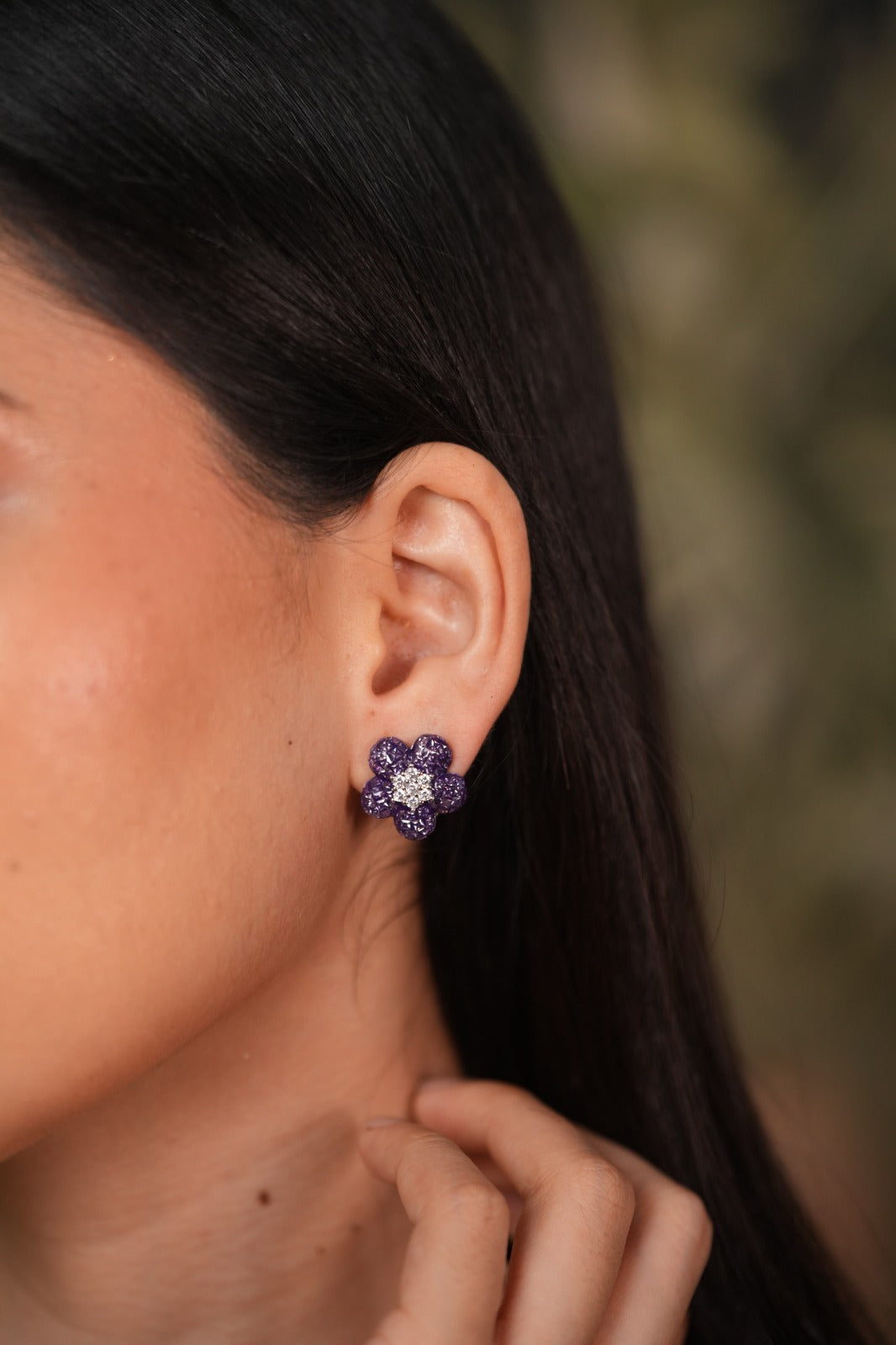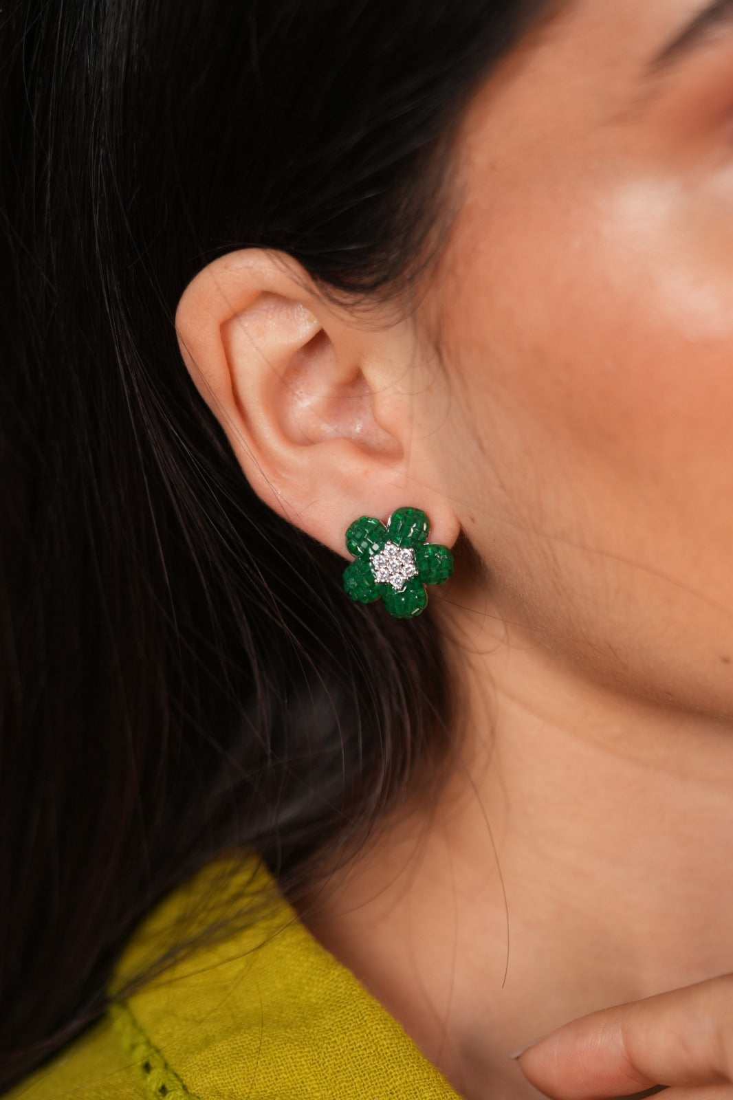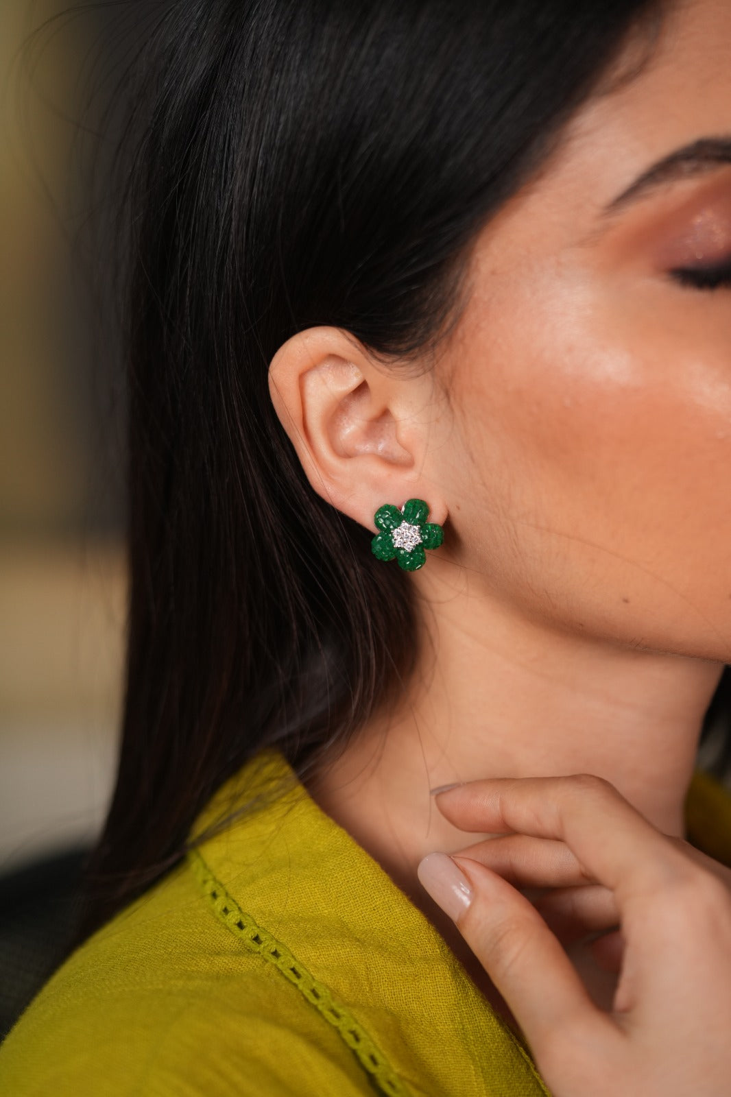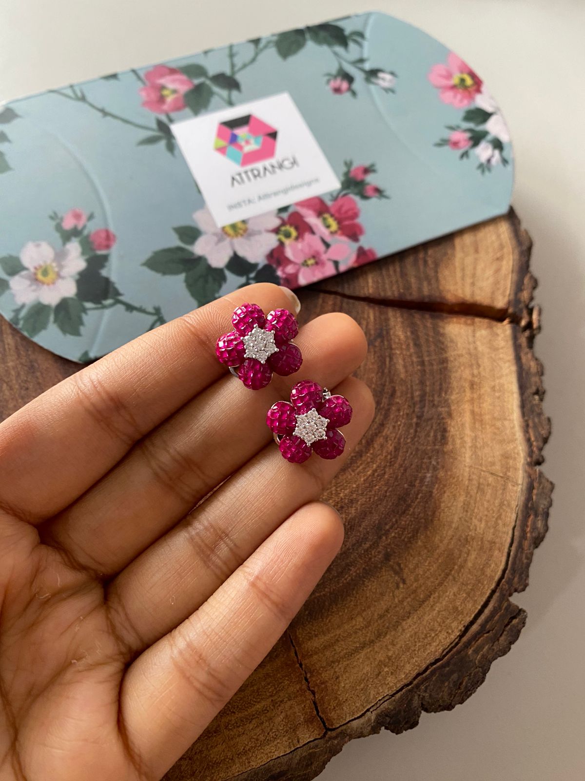 Effective diamond earrings with  coloured stones in pressure setting or rather illusion setting, that shine bright just like the real thing. These pretty baubles look outstanding, believe us!