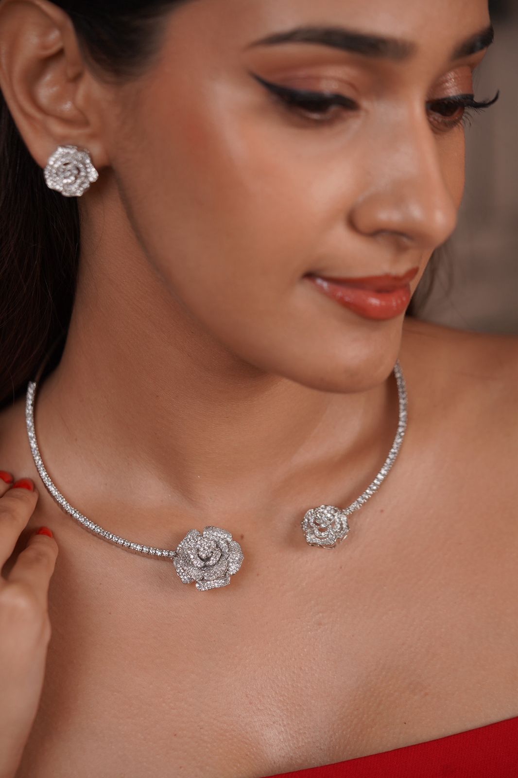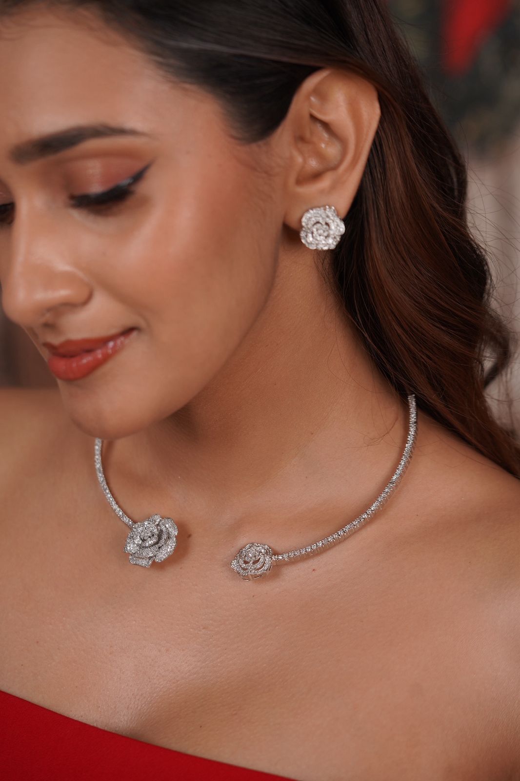 Blooming Rose Diamond Hasli Set | Flexi - Attrangi