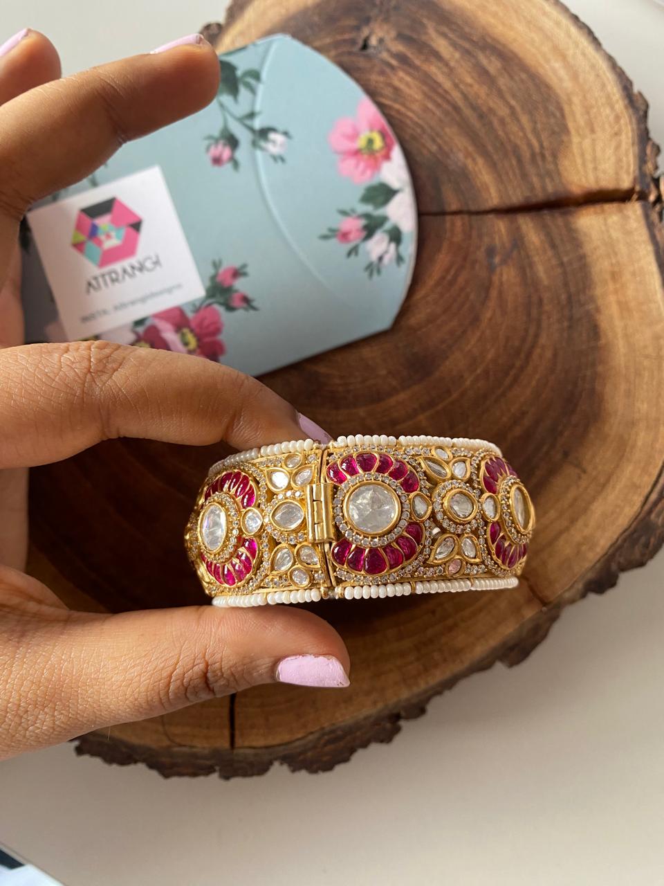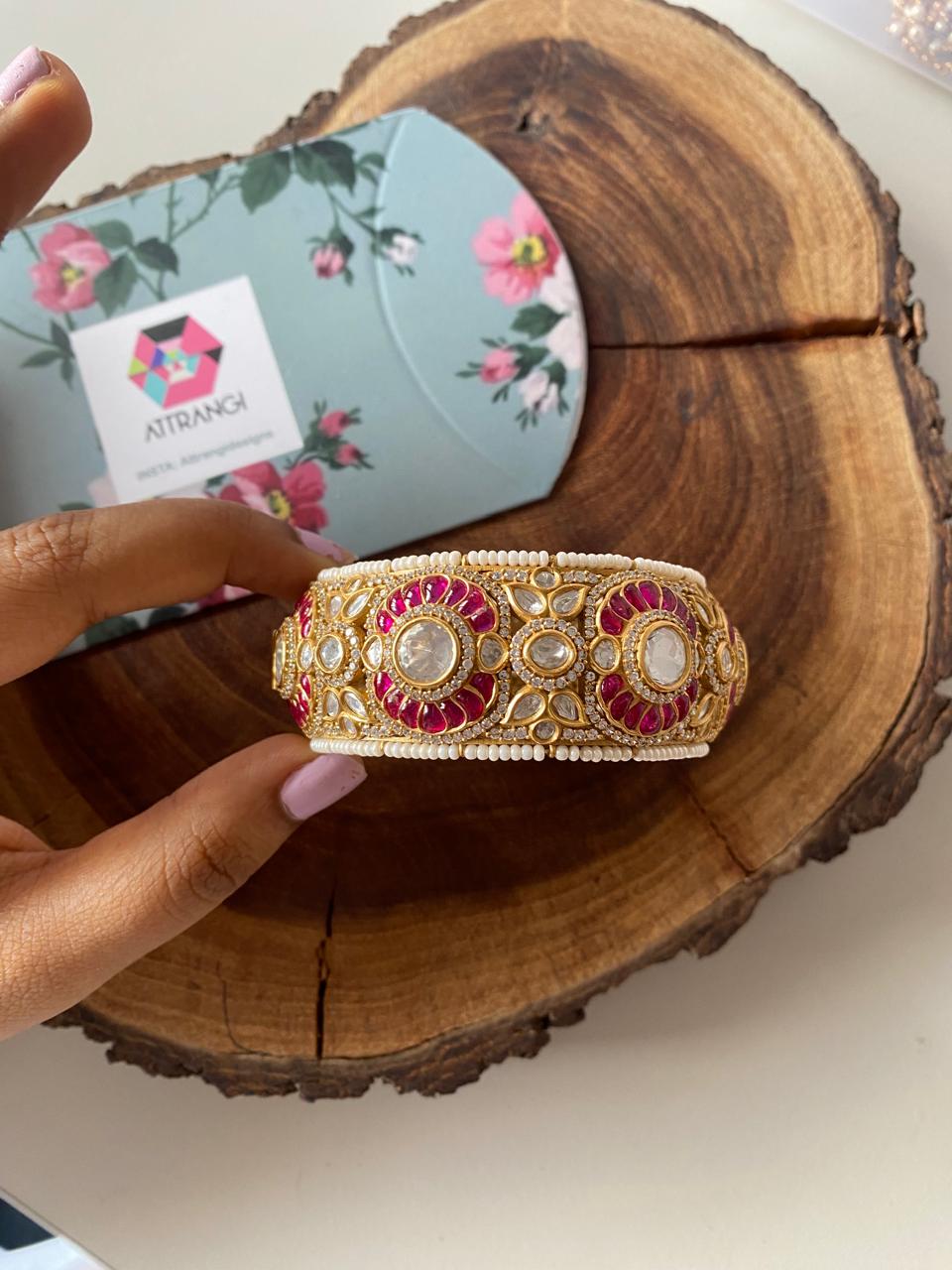 Runjun Polki Moissanite Thick Uncut Diamond Kada