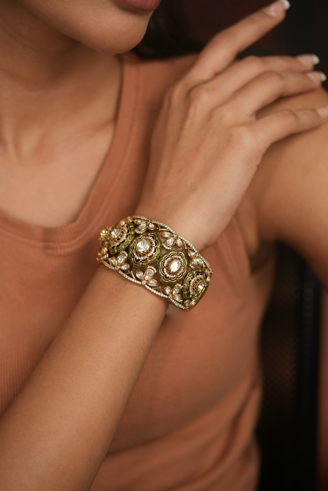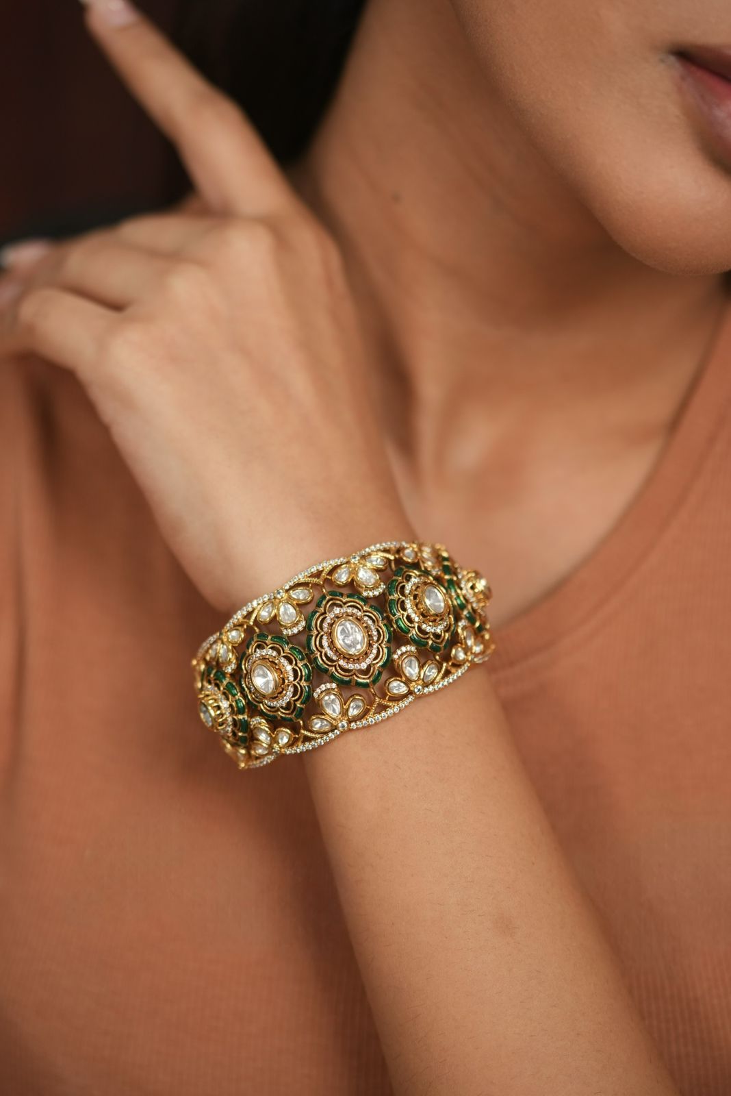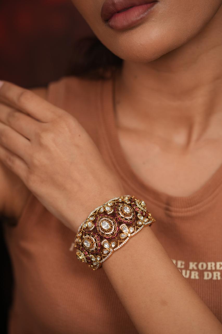 Shanti Polki Moissanite Rich Next To Real Kada | Uncut Diamond