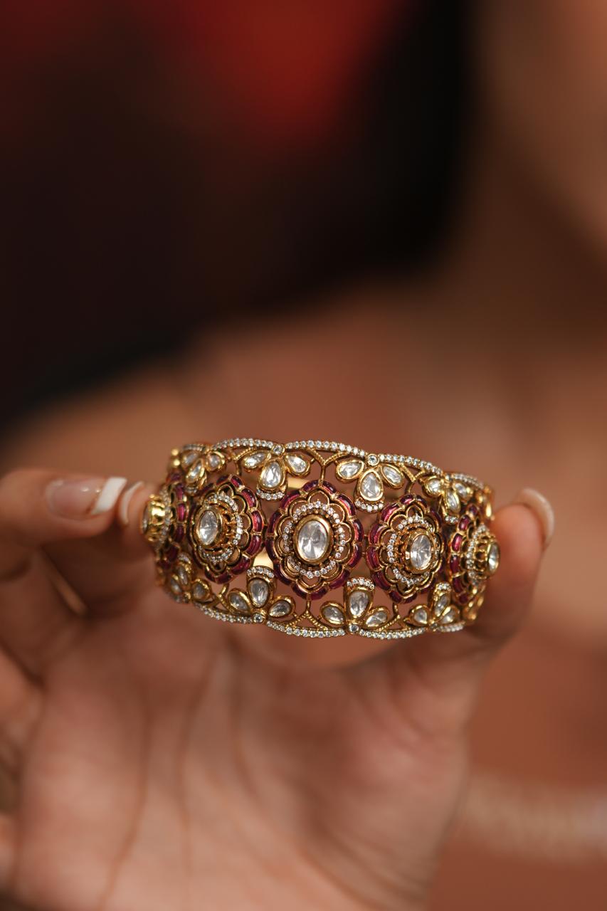 Shanti Polki Moissanite Rich Next To Real Kada  | Uncut Diamond