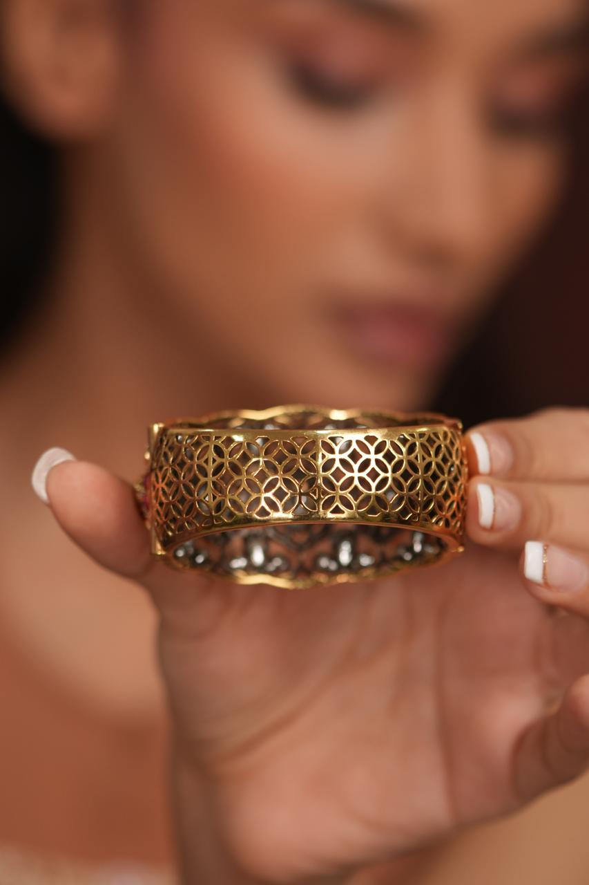 Moissanite epoxy Meenakari heritage heavy solid kada — crafted to look next to real, made by the finest karigars with intricate detailing and timeless elegance. This next to real kada is just enough for any desi ensemble. One of this and you will be sorted for life.