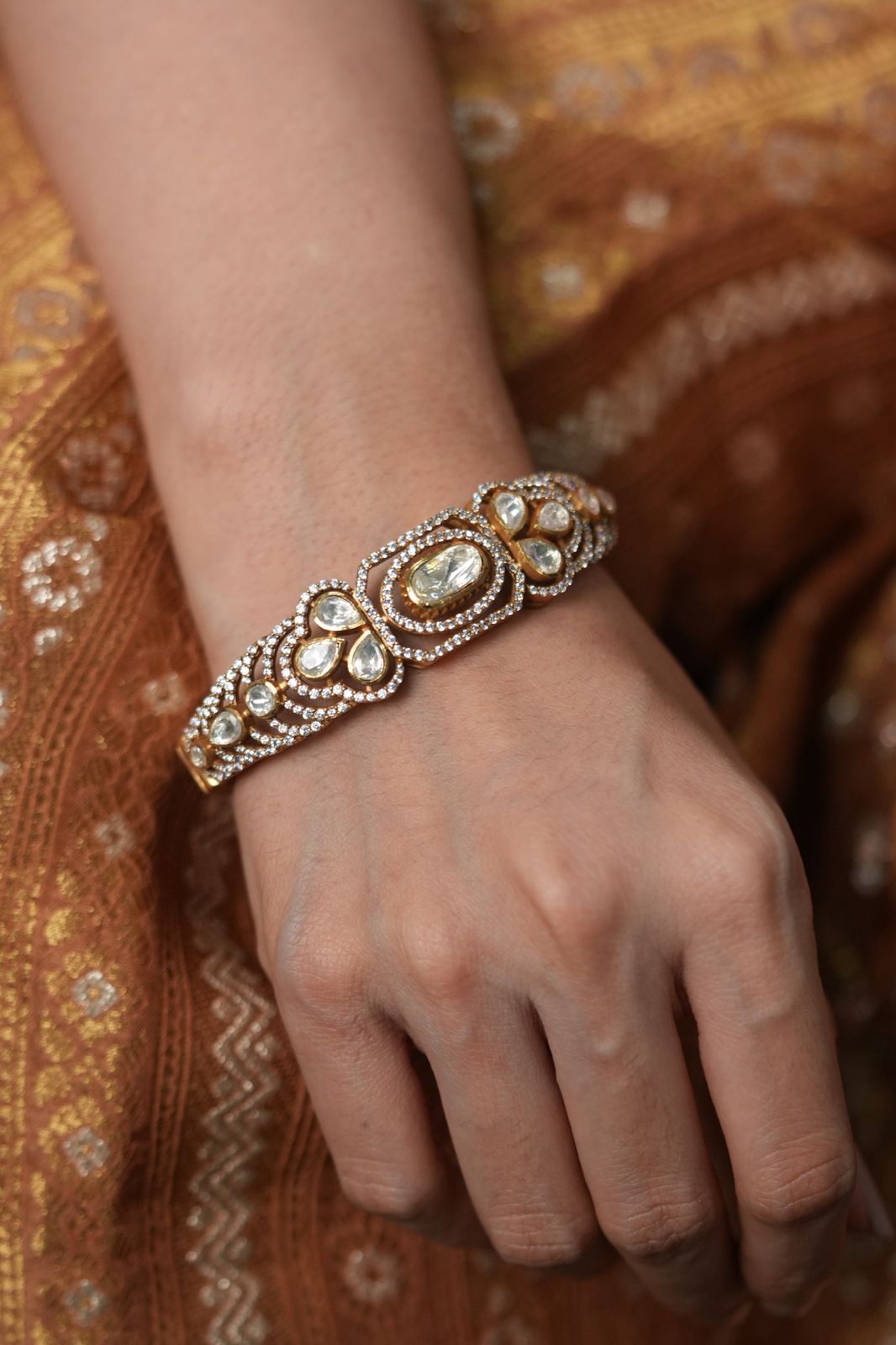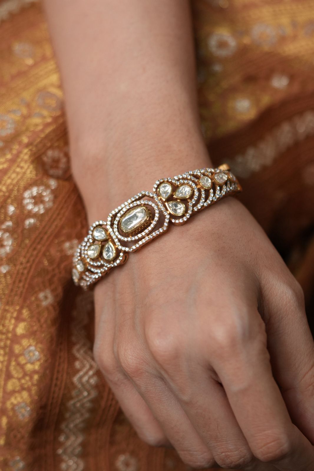 Tanya Moissanite Polki Uncut Diamond Bracelet | Kada Style