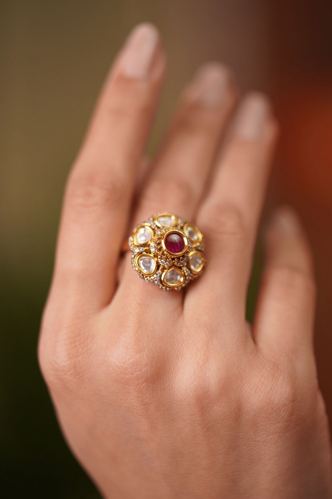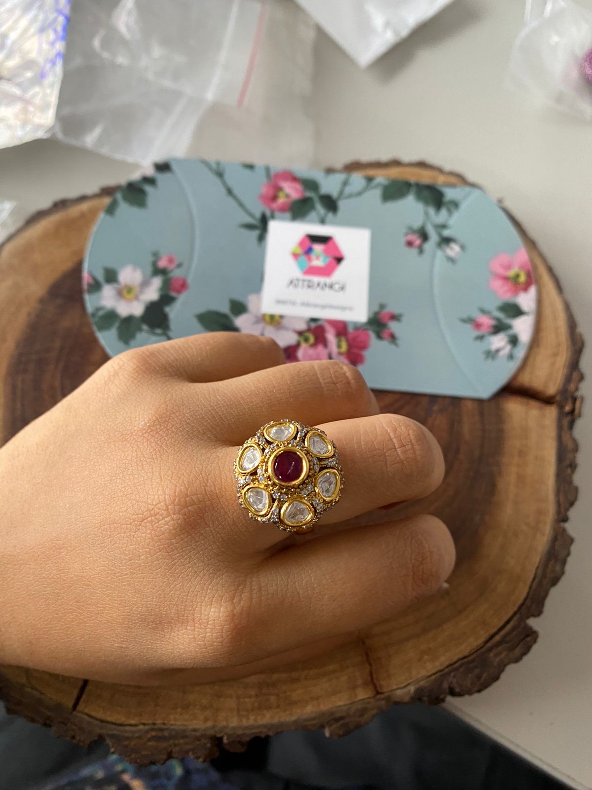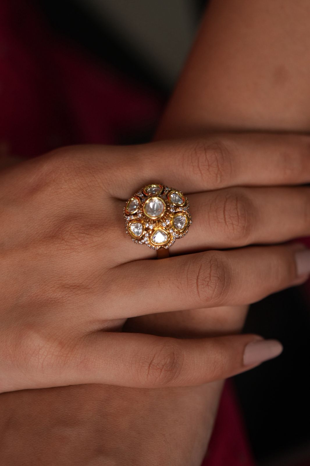 Mini Phool Polki Moissanite Uncut Diamond Ring | Adjustable