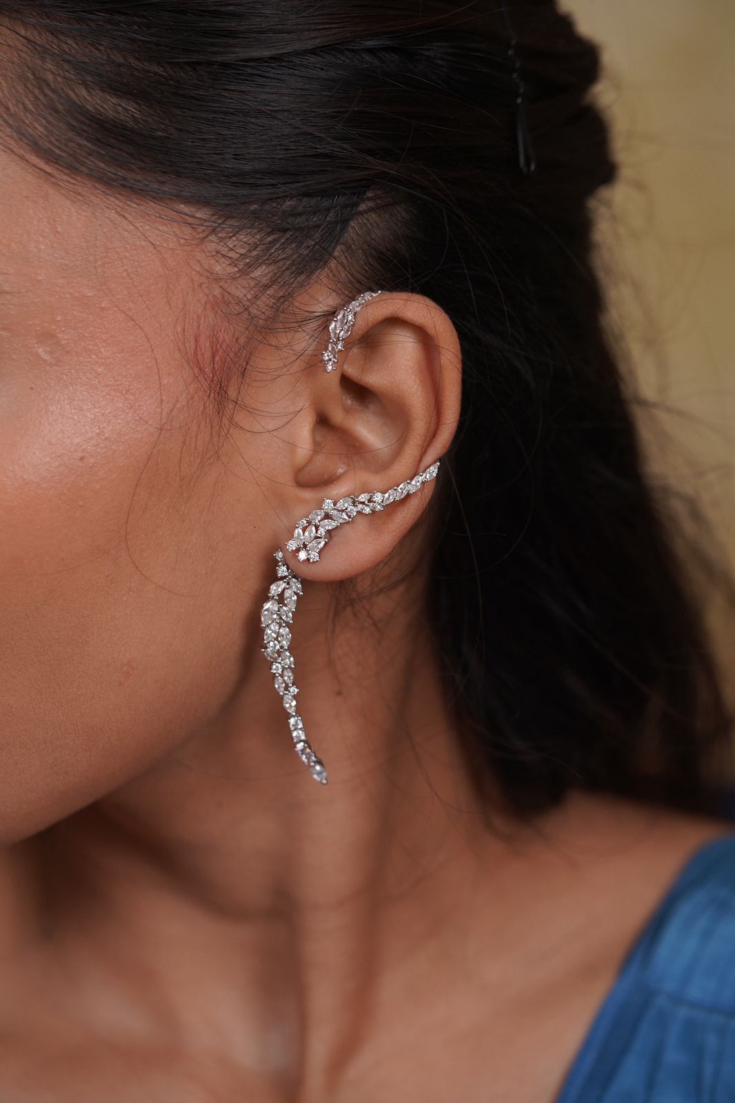 Something statement making and offbeat, we bring to you the most pretty dainty diamond ear cuff that stands out with grace and demeanour. Make a statement quite effortlessly with these vibrant earrings.