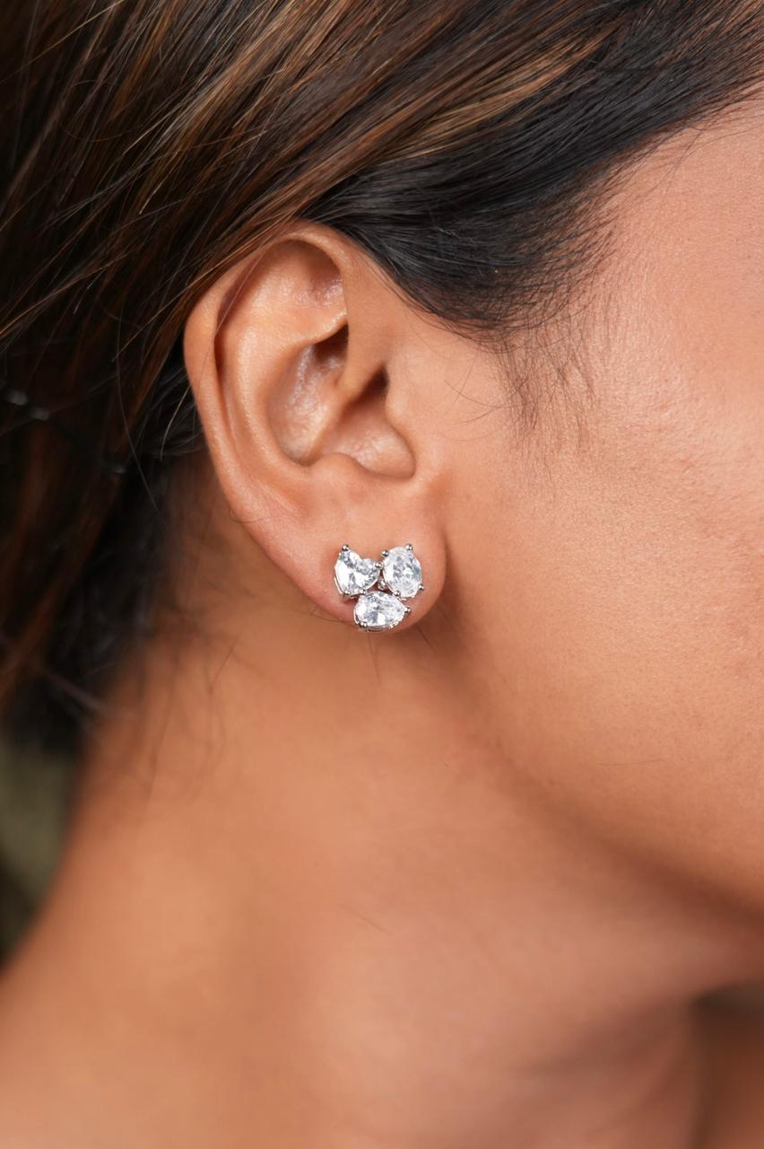 Diamond studs with 1 heart, 1 pear and 1 oval shaped soltiaires intertwined together to give you the prettiest diamond studs. Assembled with just soltiaires, so perfect!