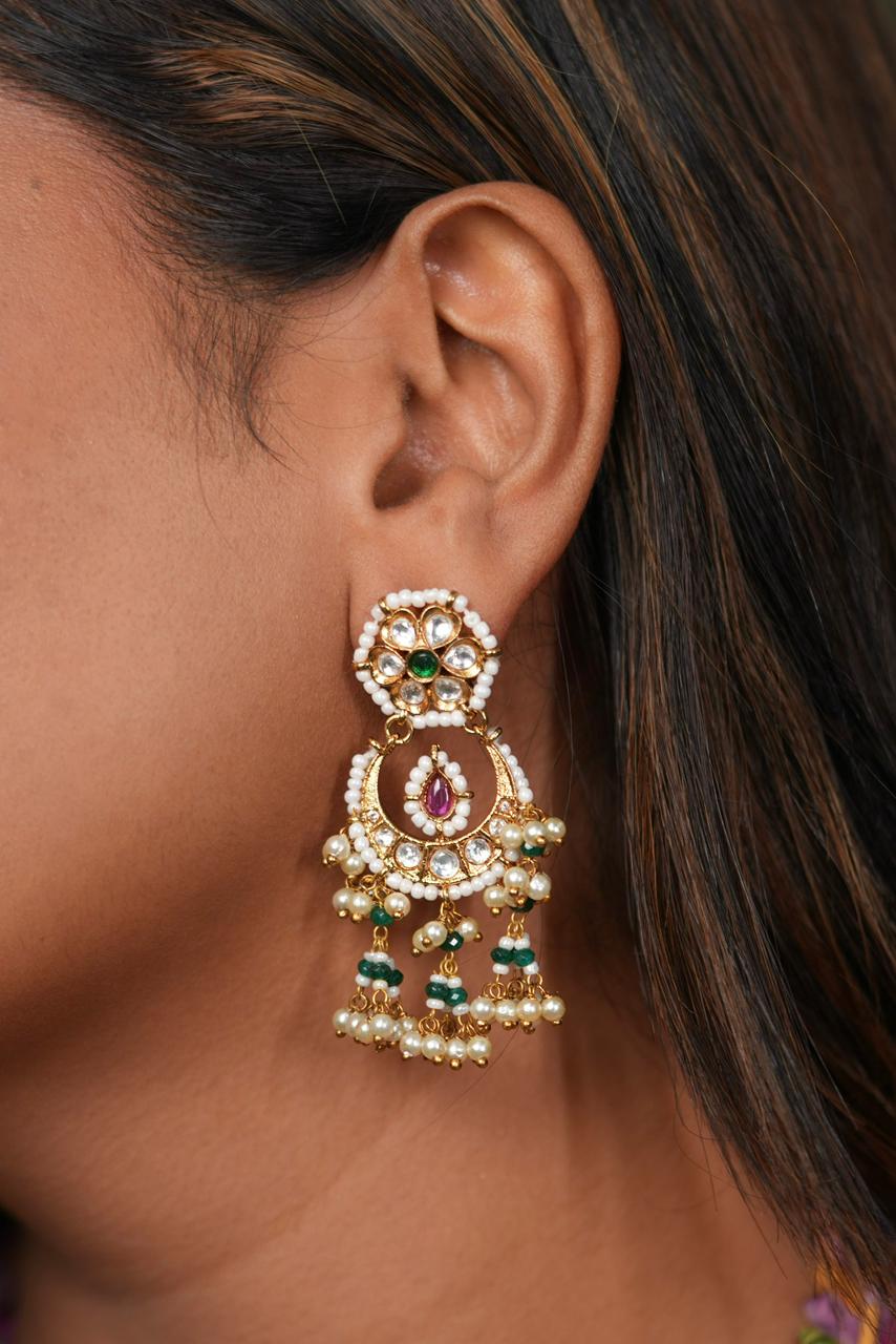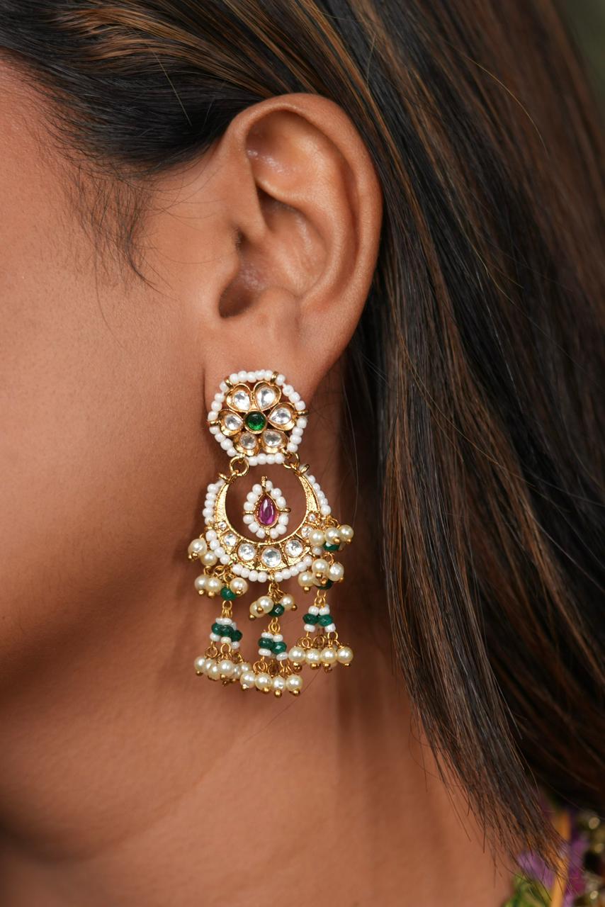 Mini Small Sized Polki Chandbali | Indian Earring