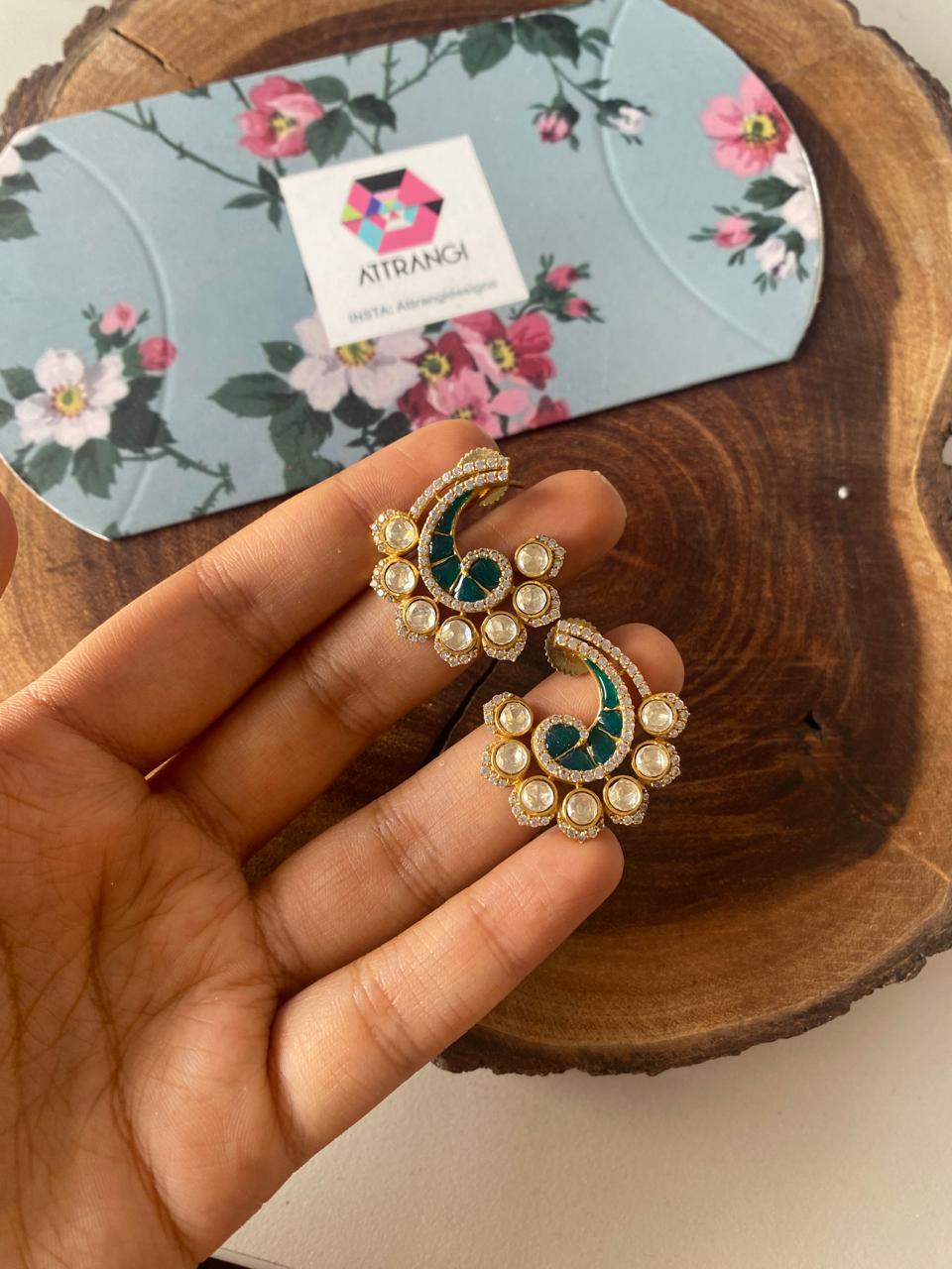 Their diamond jhumkas are such good quality. The setting is heavy and solid. The diamonds are clear and sparkly after weeks of wear. Worth every penny for statement earrings that last! Thank you Attrangi