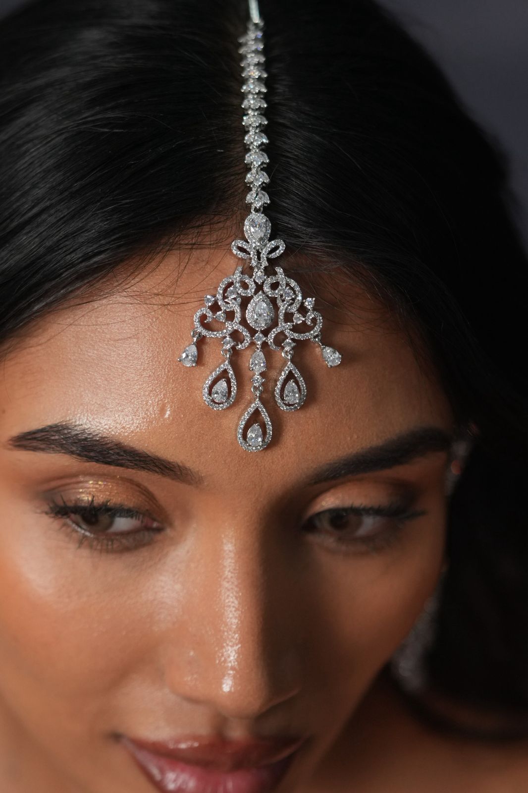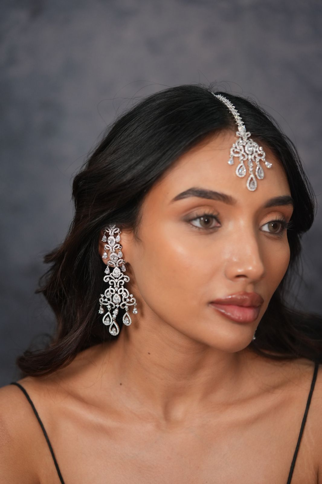 JagMohini Long Diamond Earrings With Maangtika