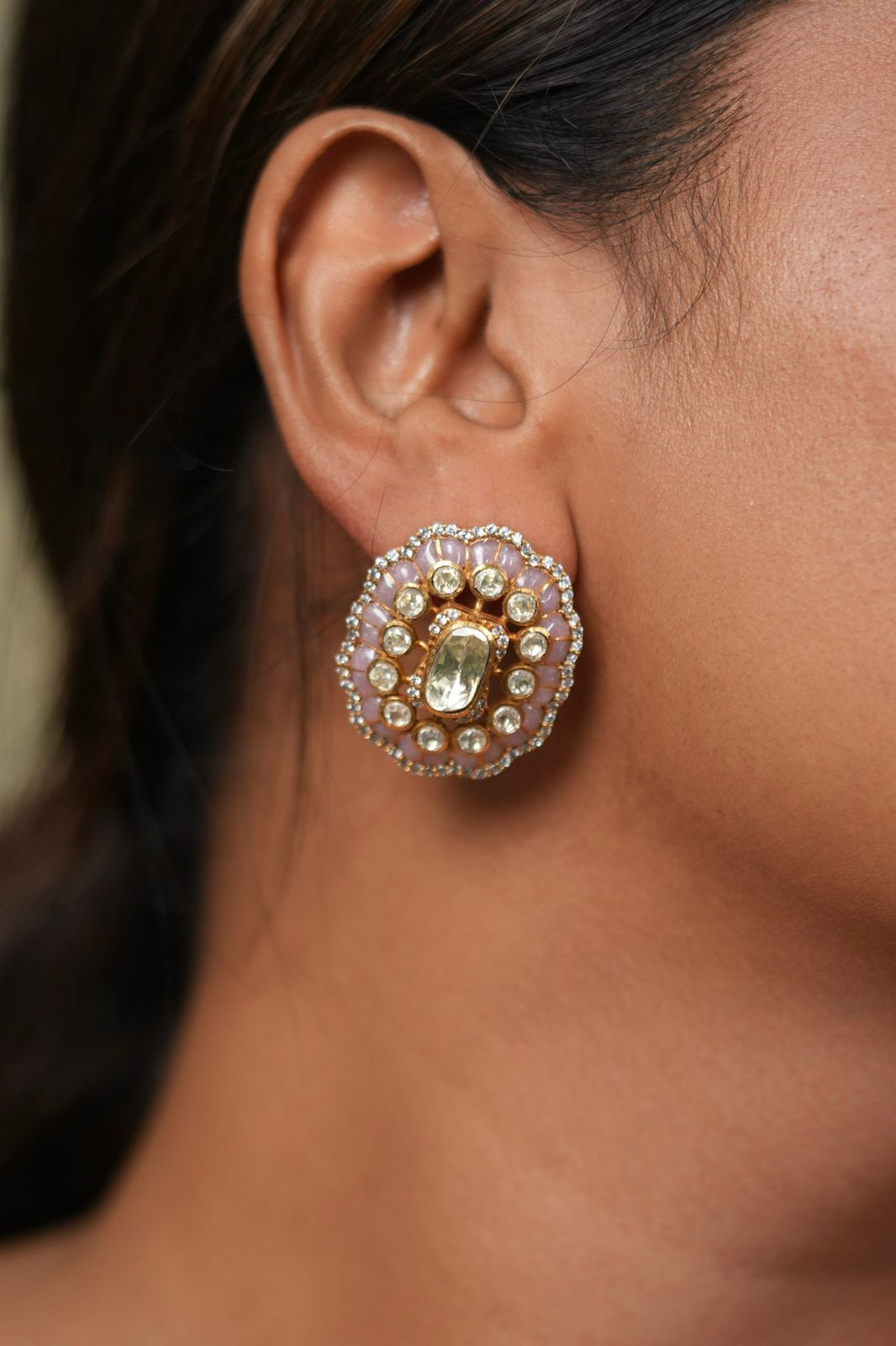 Sonam Moissanite Polki Uncut Diamond Studs | Epoxy