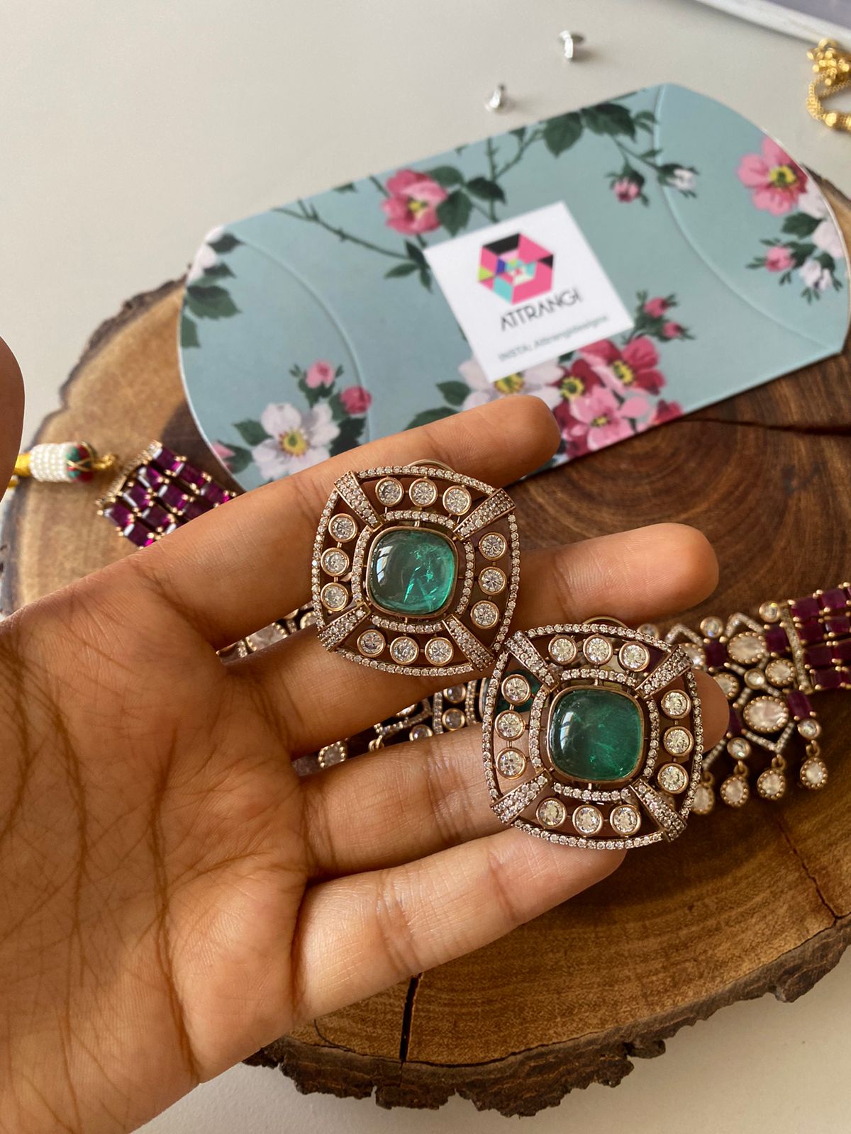 Their diamond jhumkas are such good quality. The setting is heavy and solid. The diamonds are clear and sparkly after weeks of wear. Worth every penny for statement earrings that last! Thank you Attrangi