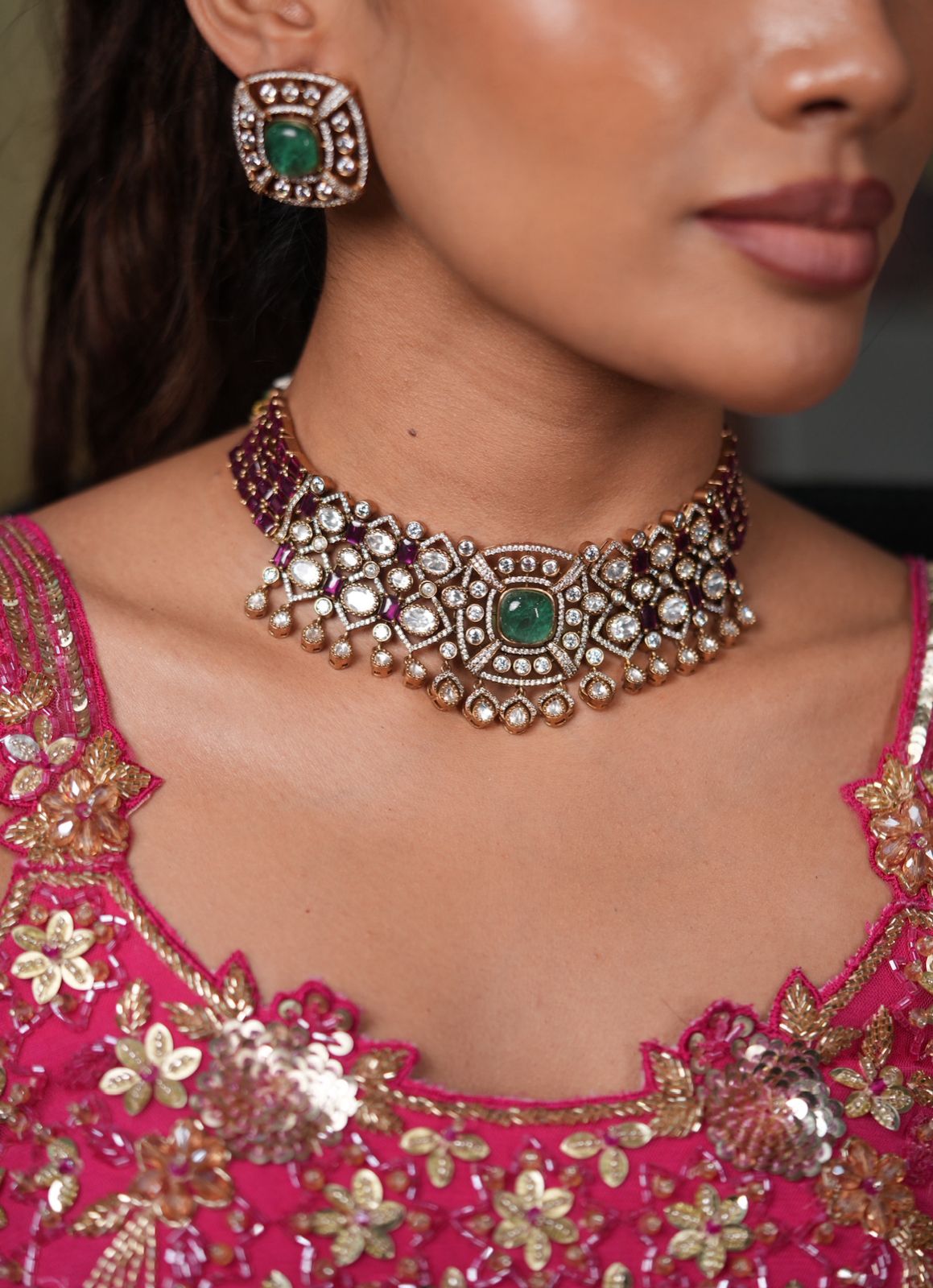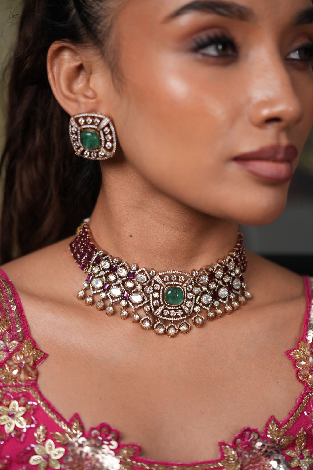 Shivani Polki Fluorite Ruby Indian Choker Set