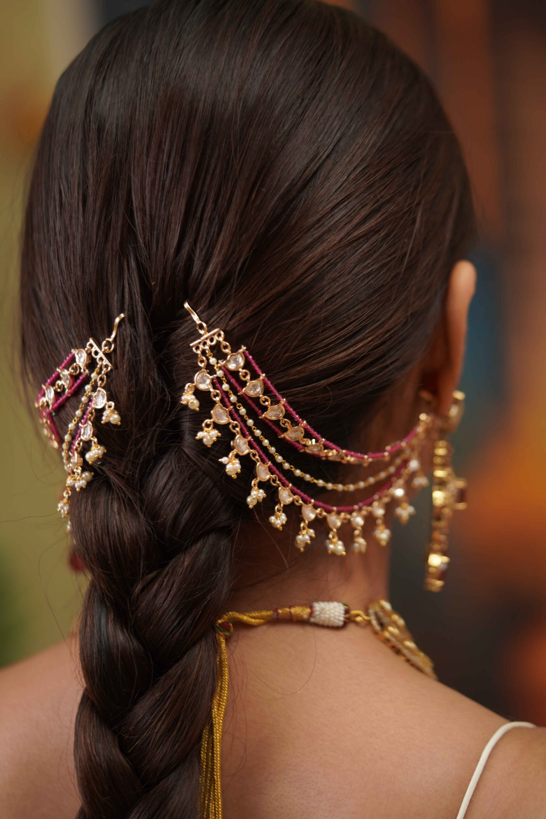 4. Ruby Pearl and moissanite hair chain Price - 4250