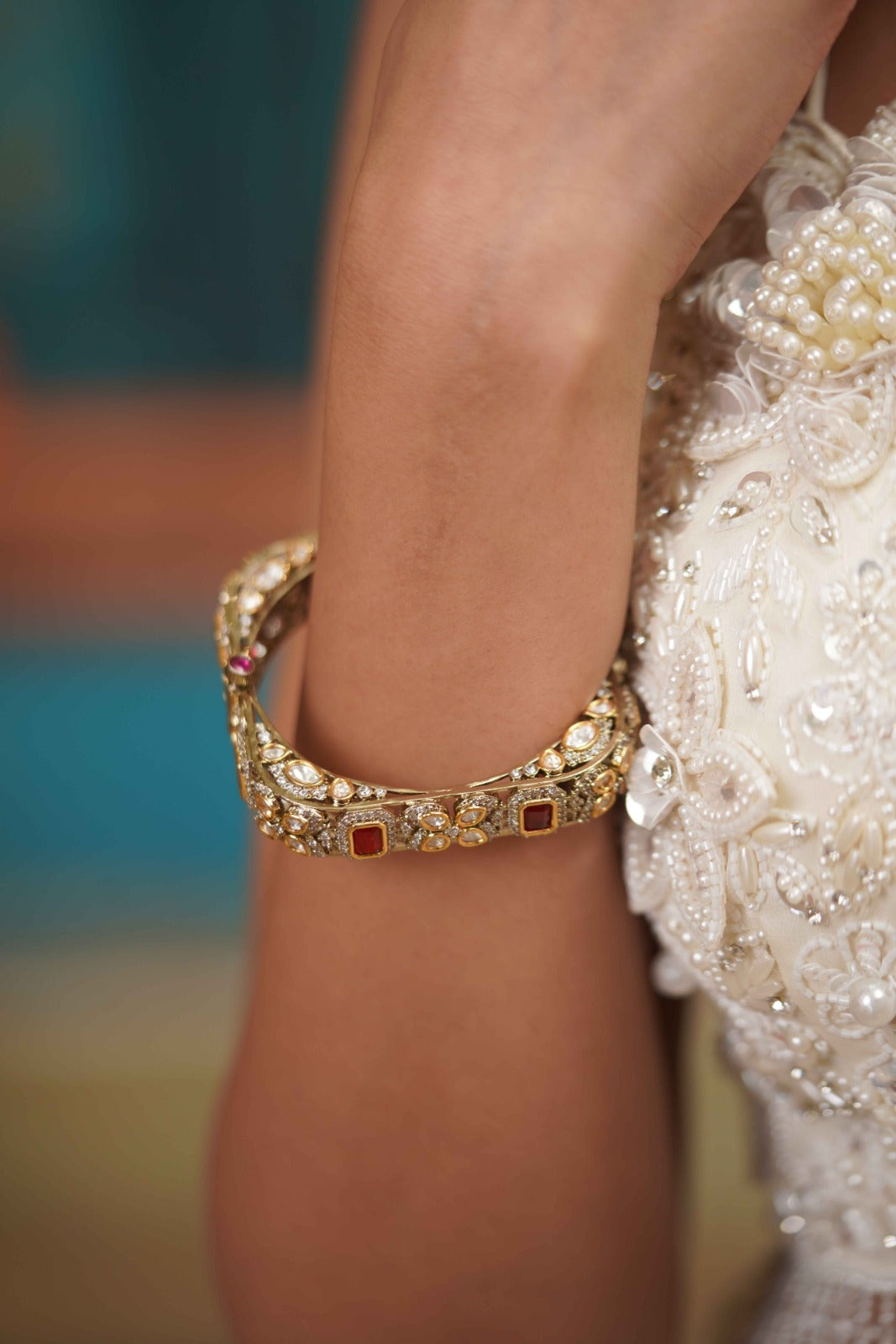 3. Ruby dominant polki moissanite kada set (2pcs) Price - 7450