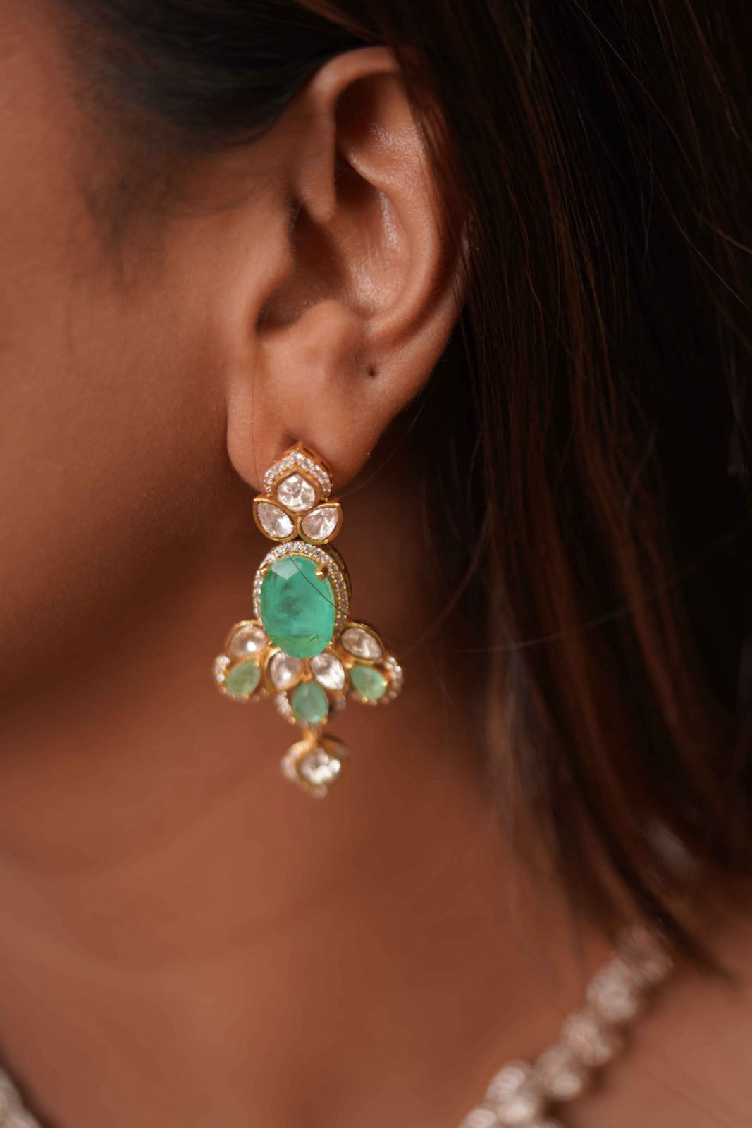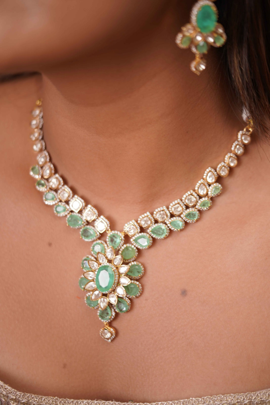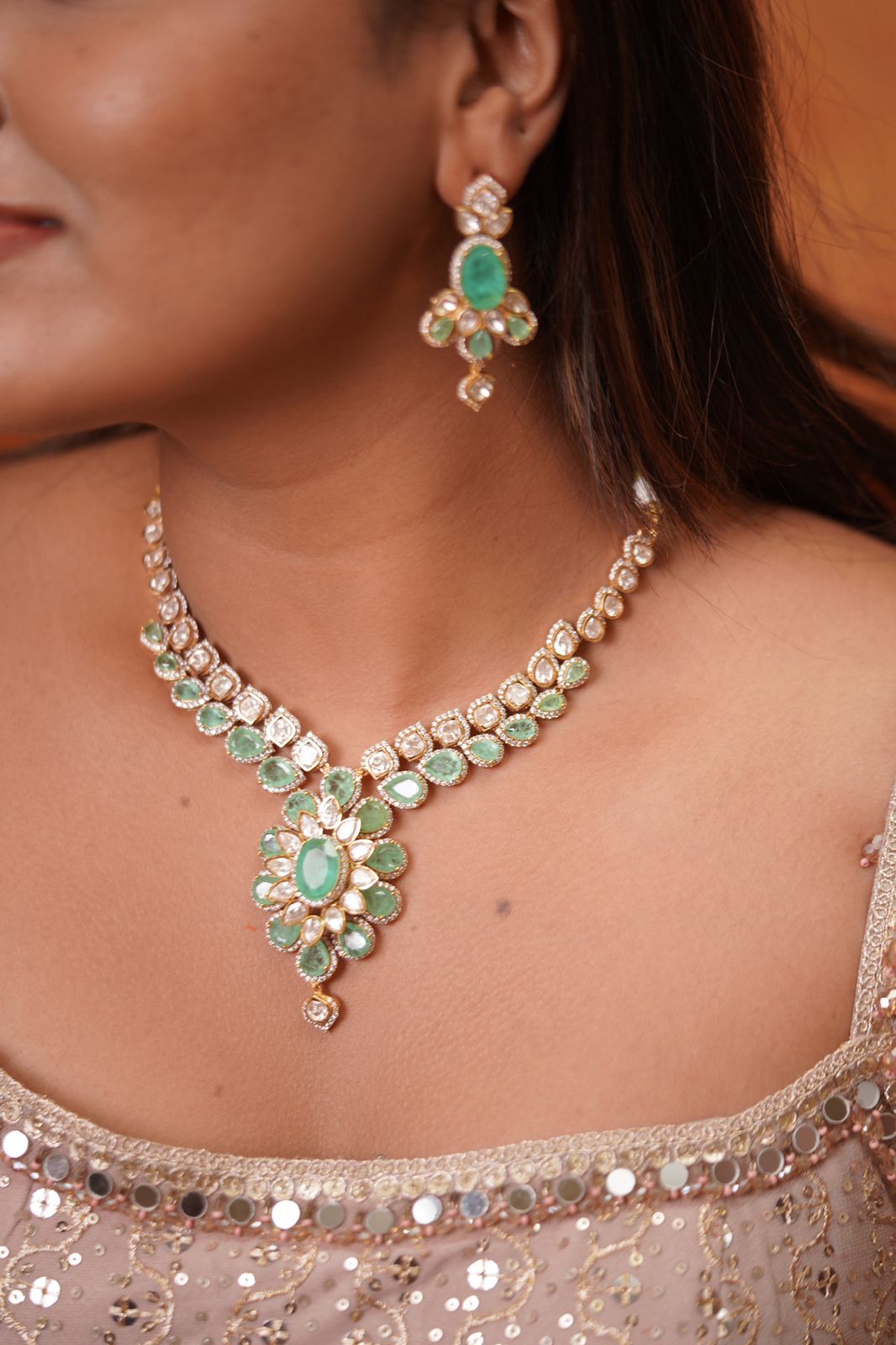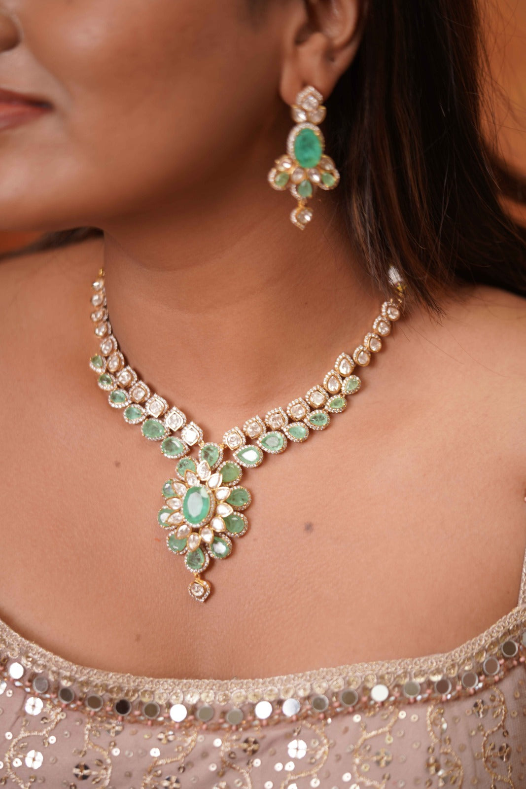 Tanishka Mint Moissanite Indo Western Polki Set | Russian Emerald