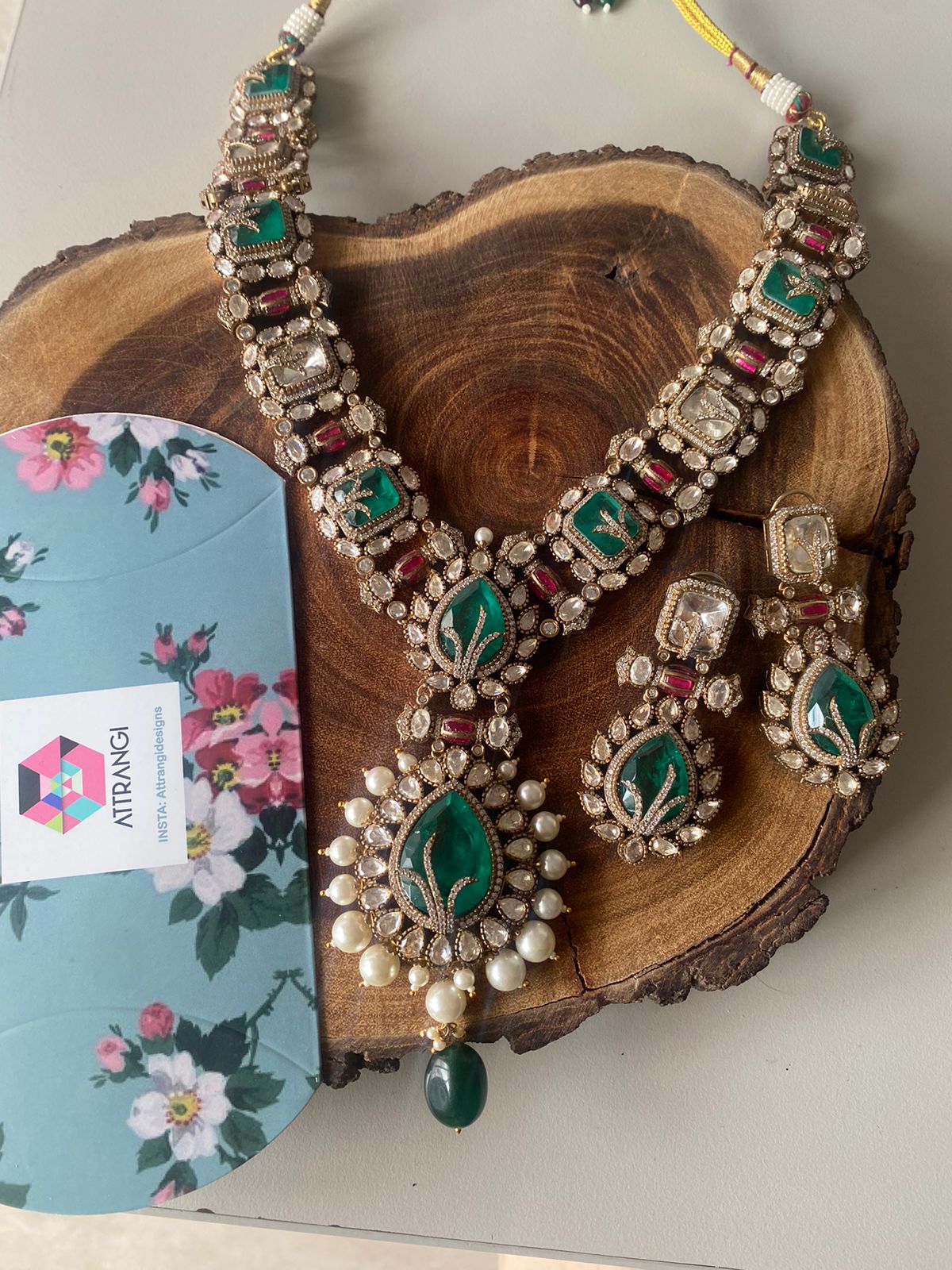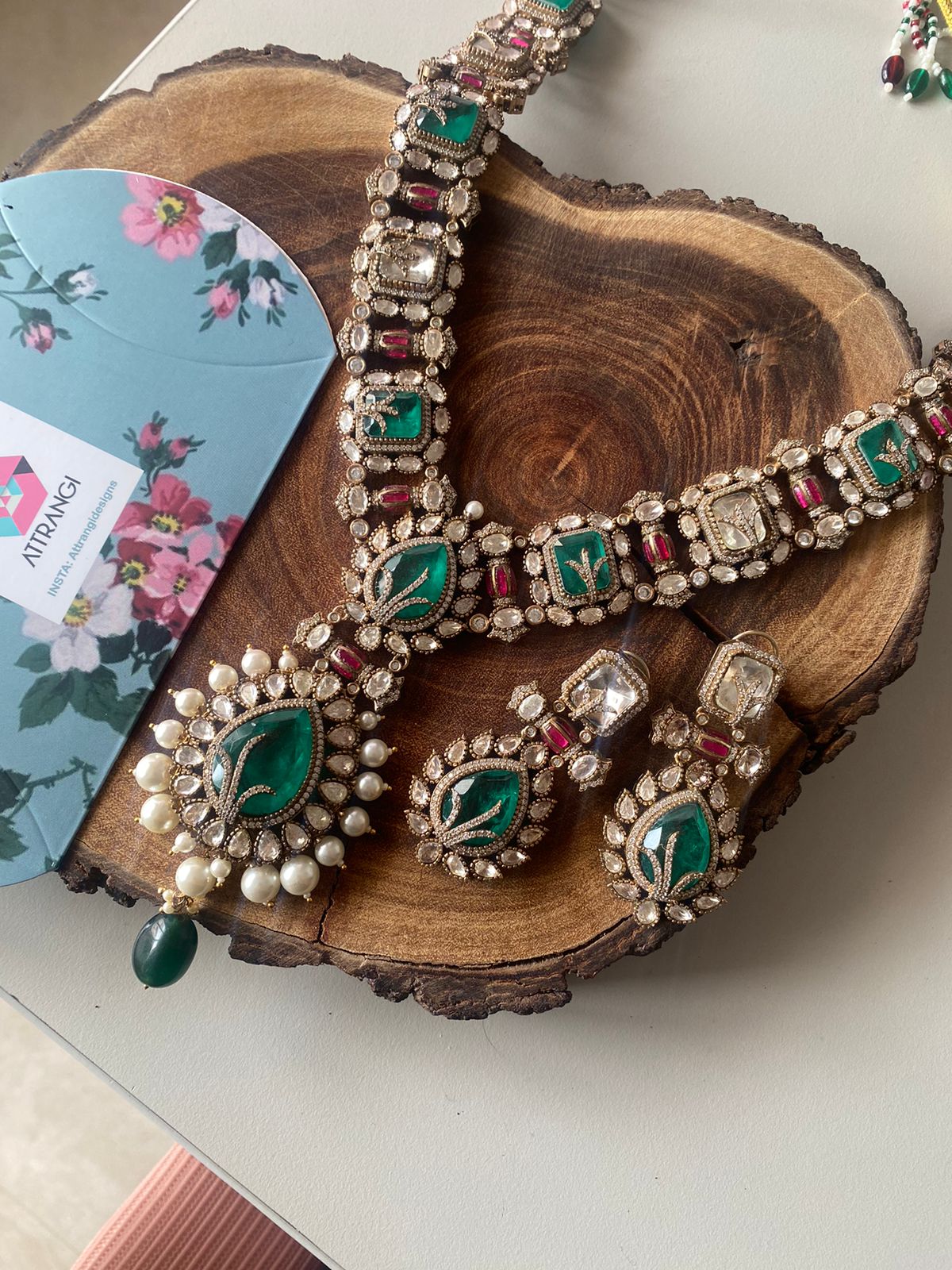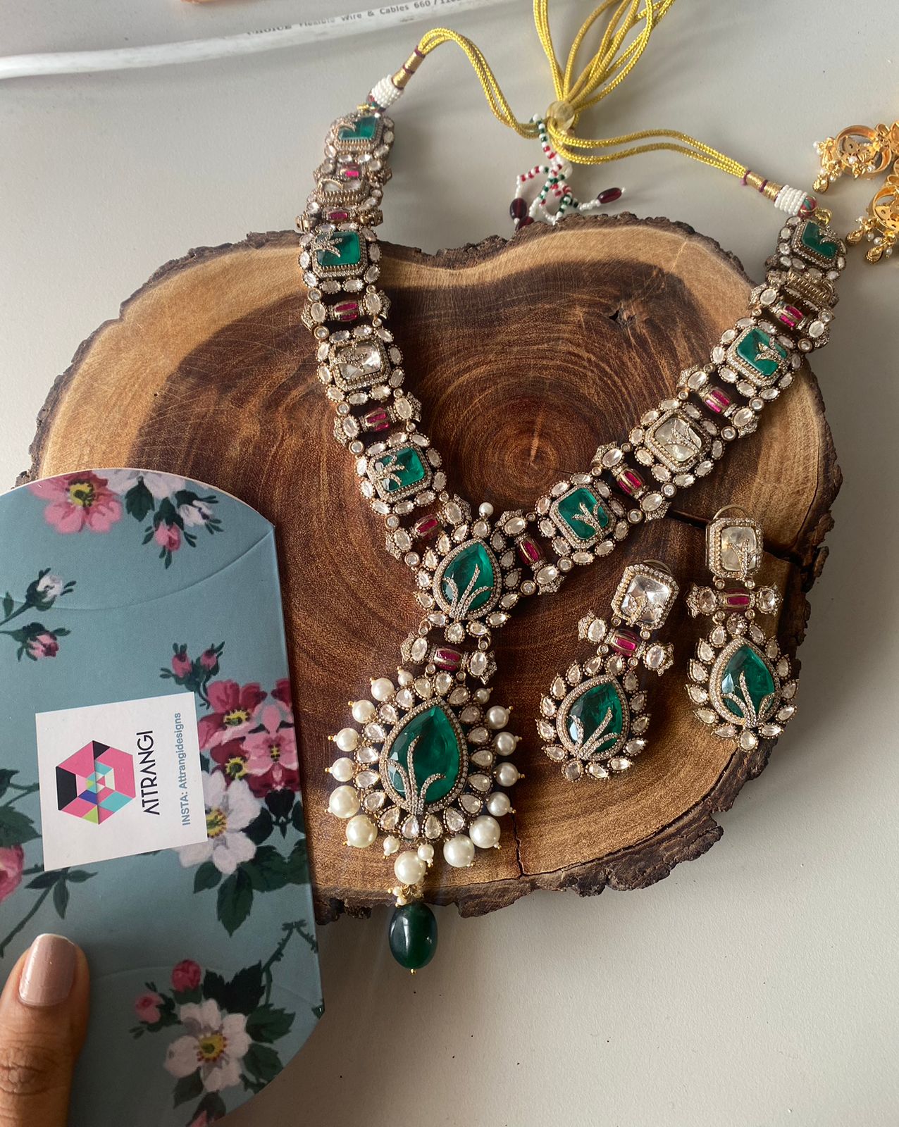 Sarabjeet Polki Emerald Rani Haar | Long Indian Set