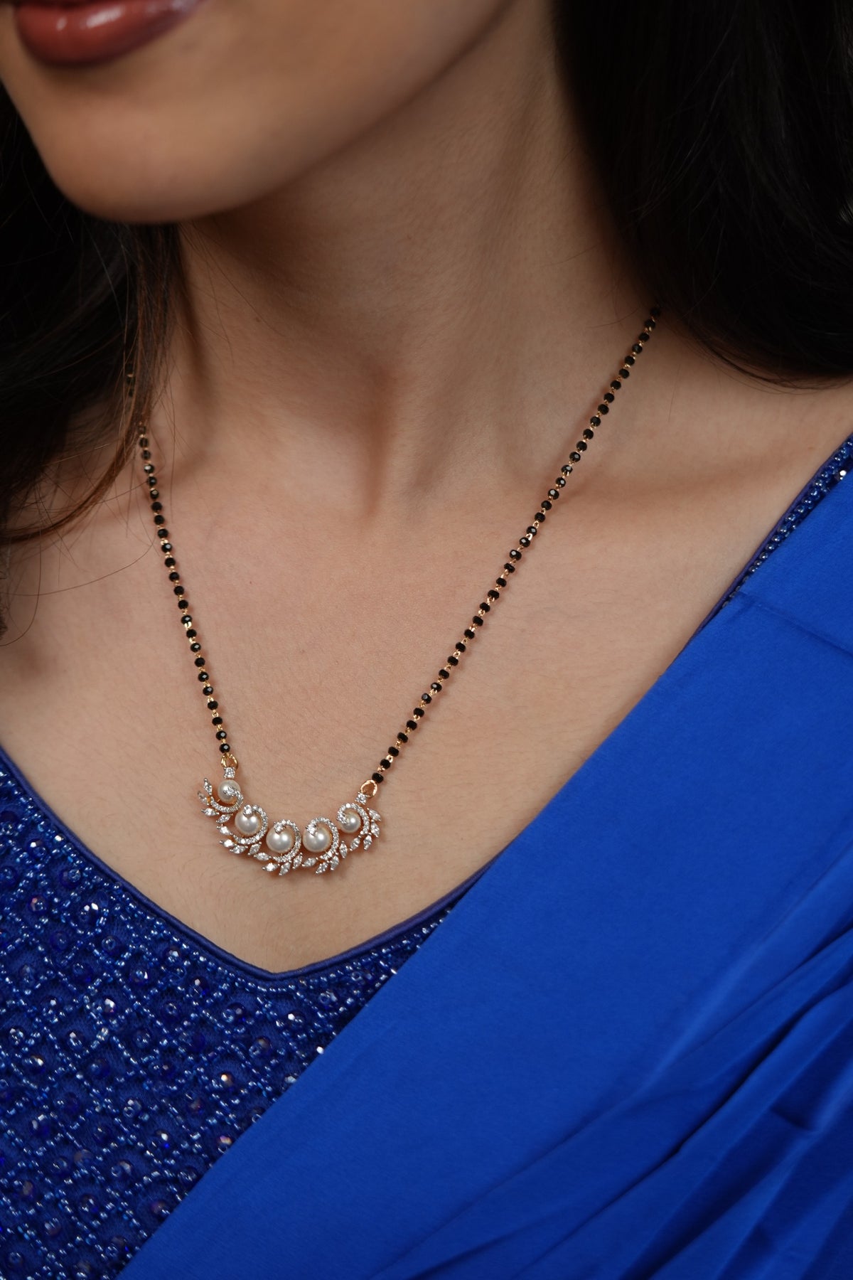 Saathiya Diamond Single Line Pearl Mangalsutra Set