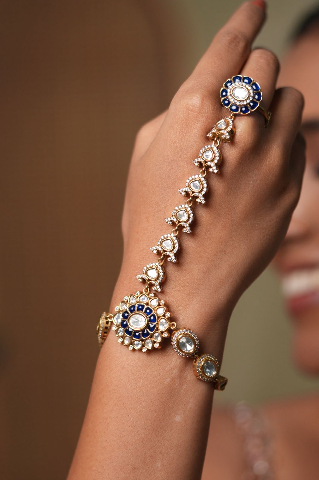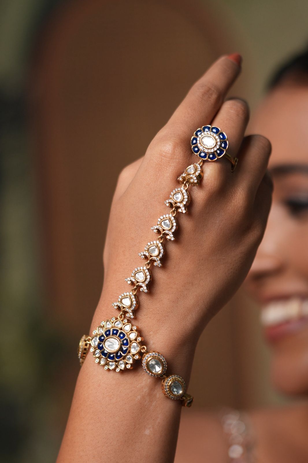 Neela Polki Moissanite uncut Hathpan| Hand harness