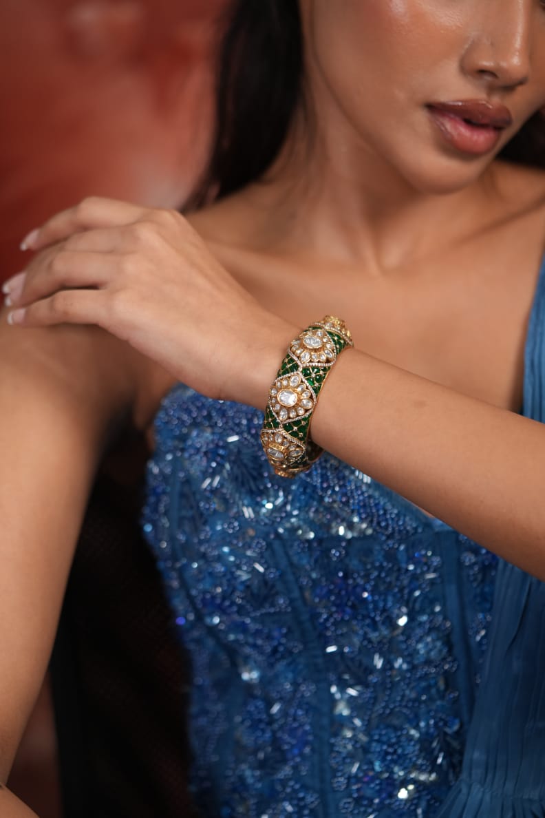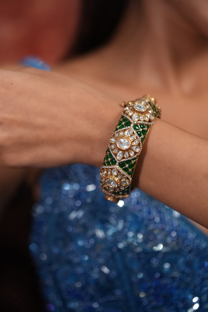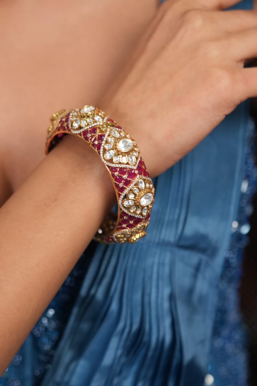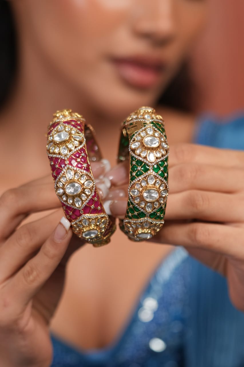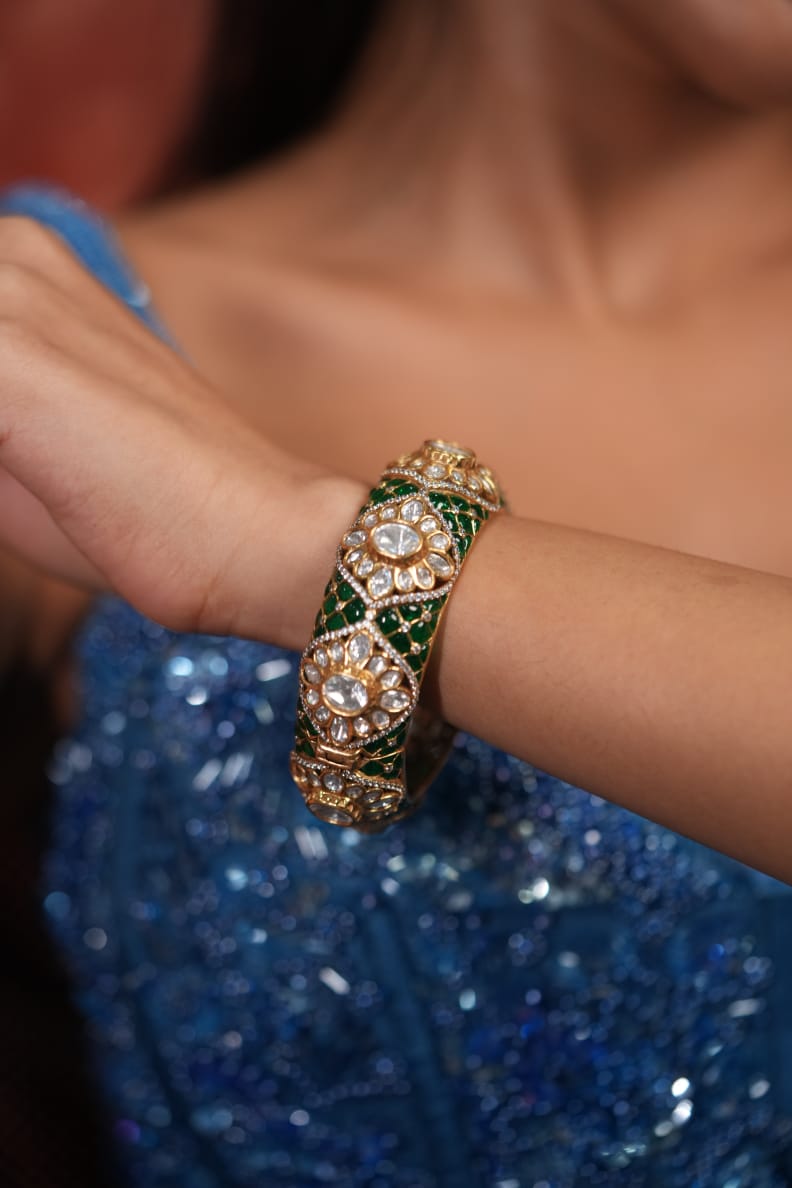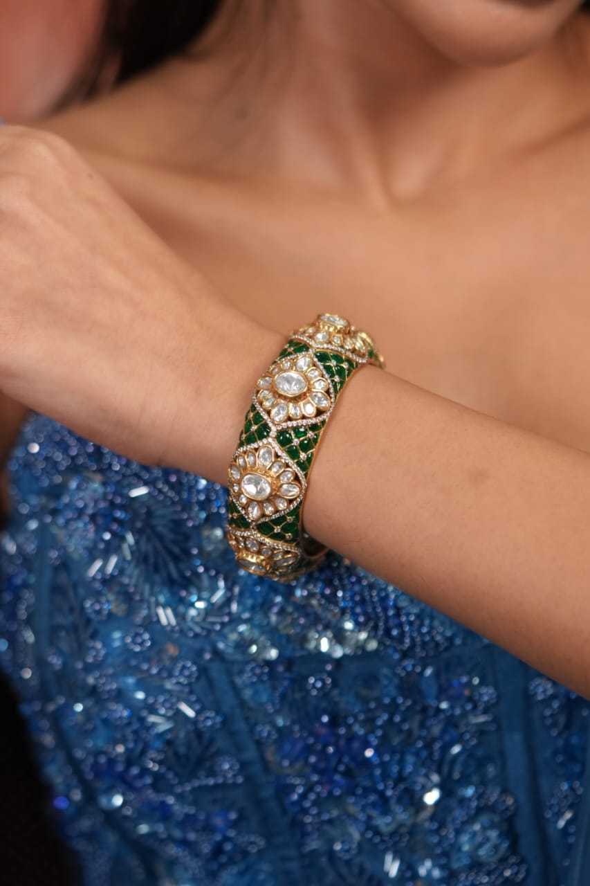 Sindhoori Polki Moissanite Meenakari Thick Kada | Next To Real