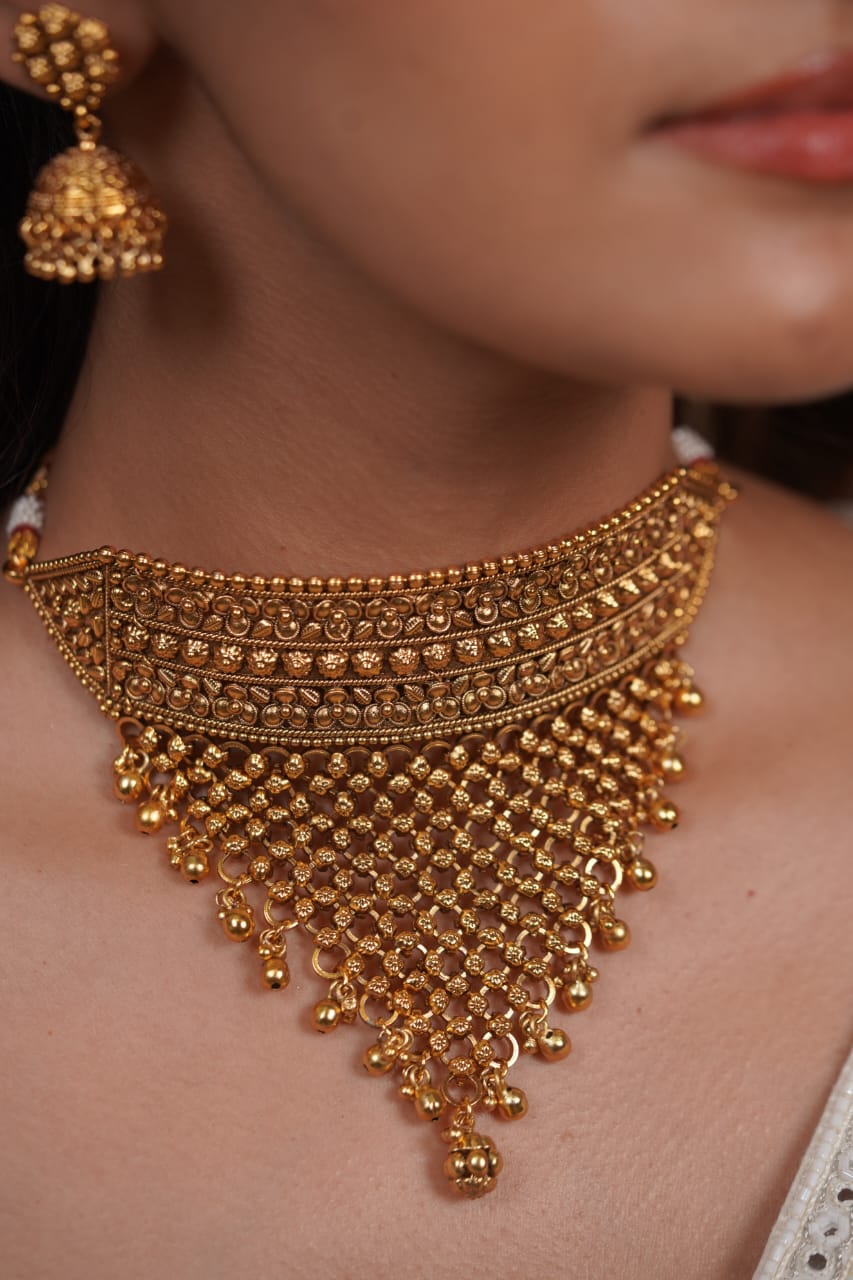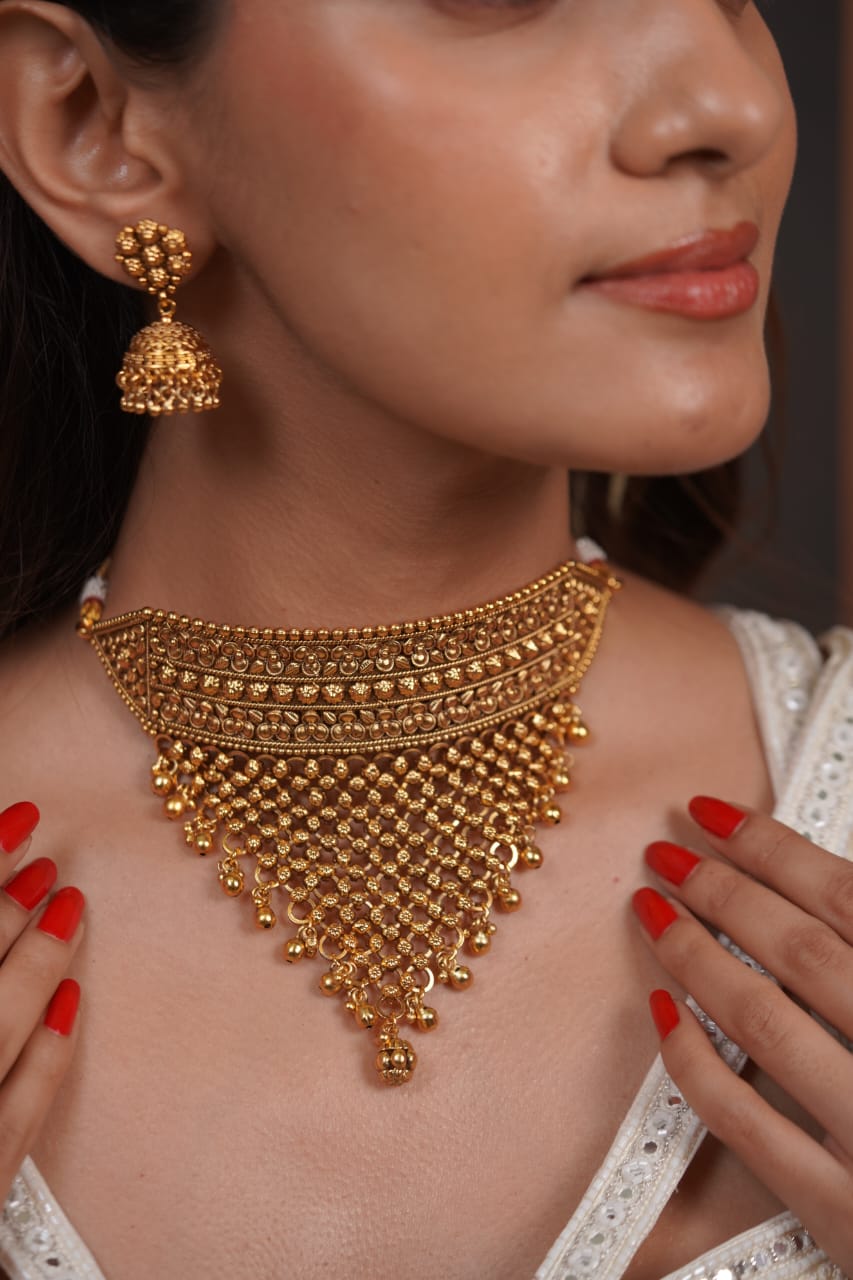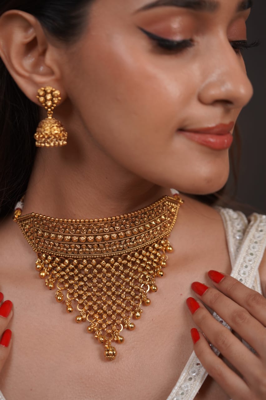 Sona Traditional Gold Rajputana Aad Set | Jhumka