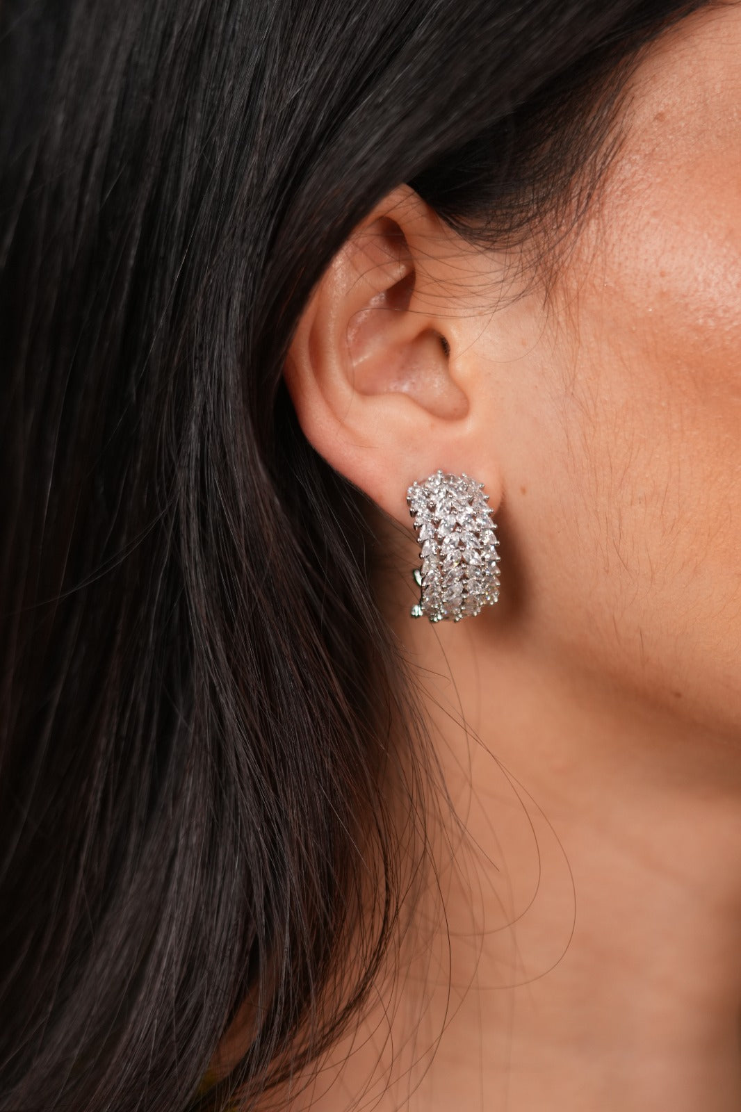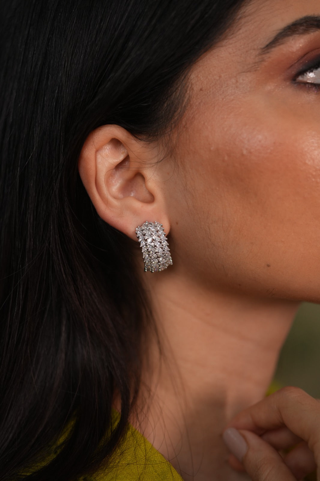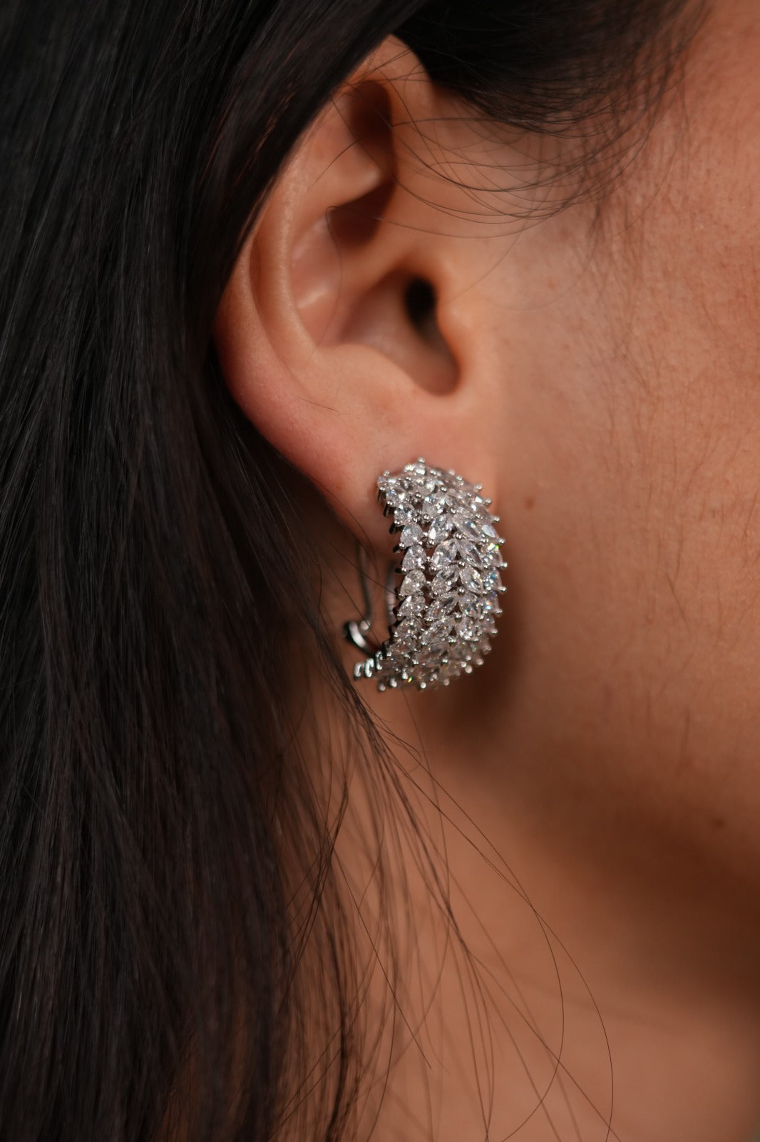 An essential diamond earring, A classic 4 line assortment of pear and marquise shaped diamonds in a half Bali, that goes well from am  to pm.
