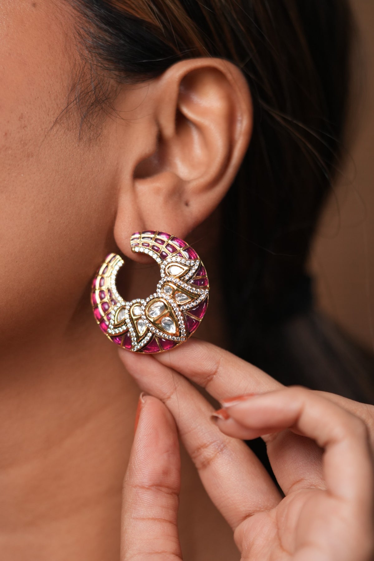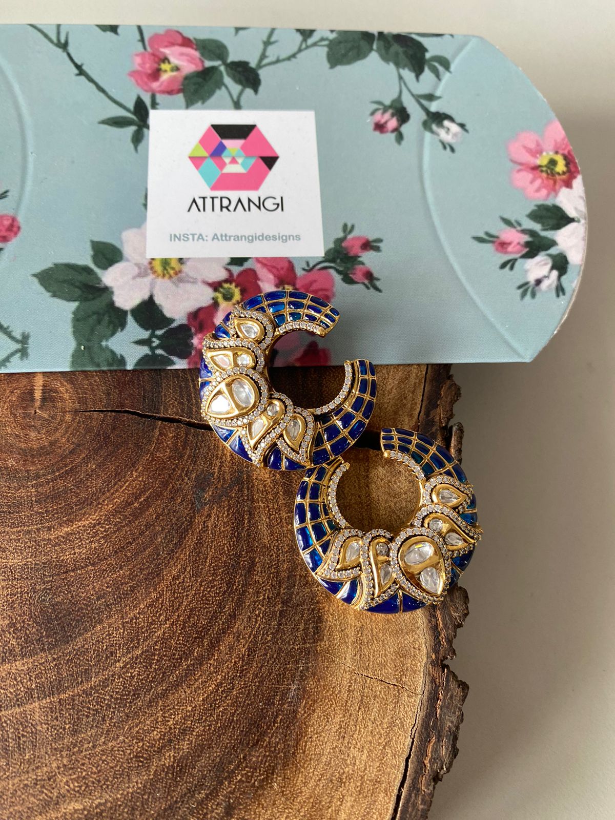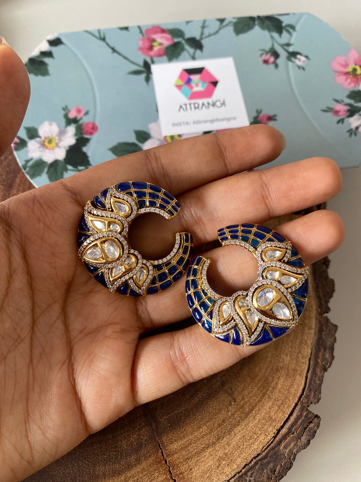 Studs with enamel in a C style design and uncut diamonds on top with diamonds around it. This Indo western piece matches all your Indian, Indo western outfits, and looks effortlessly classy!