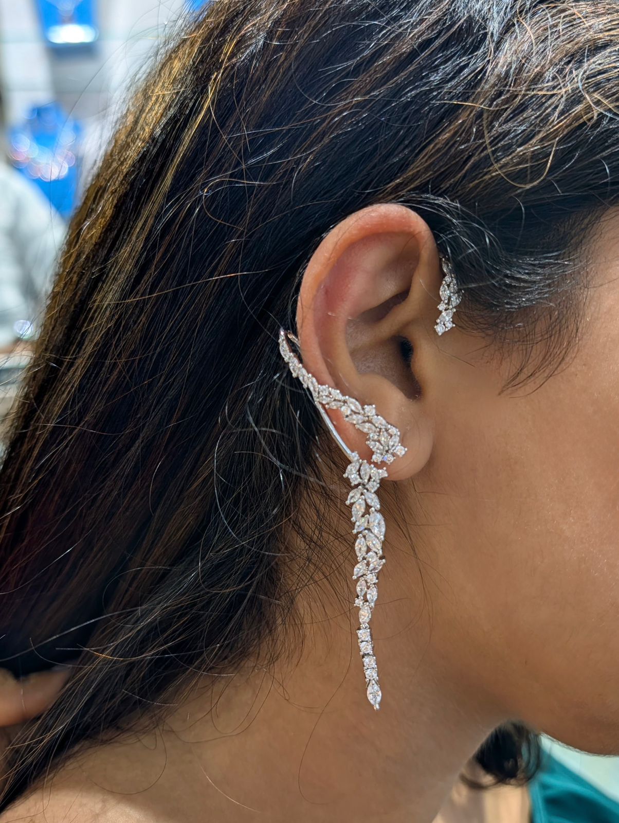 Something statement making and offbeat, we bring to you the most pretty dainty diamond ear cuff that stands out with grace and demeanour. Make a statement quite effortlessly with these vibrant earrings.