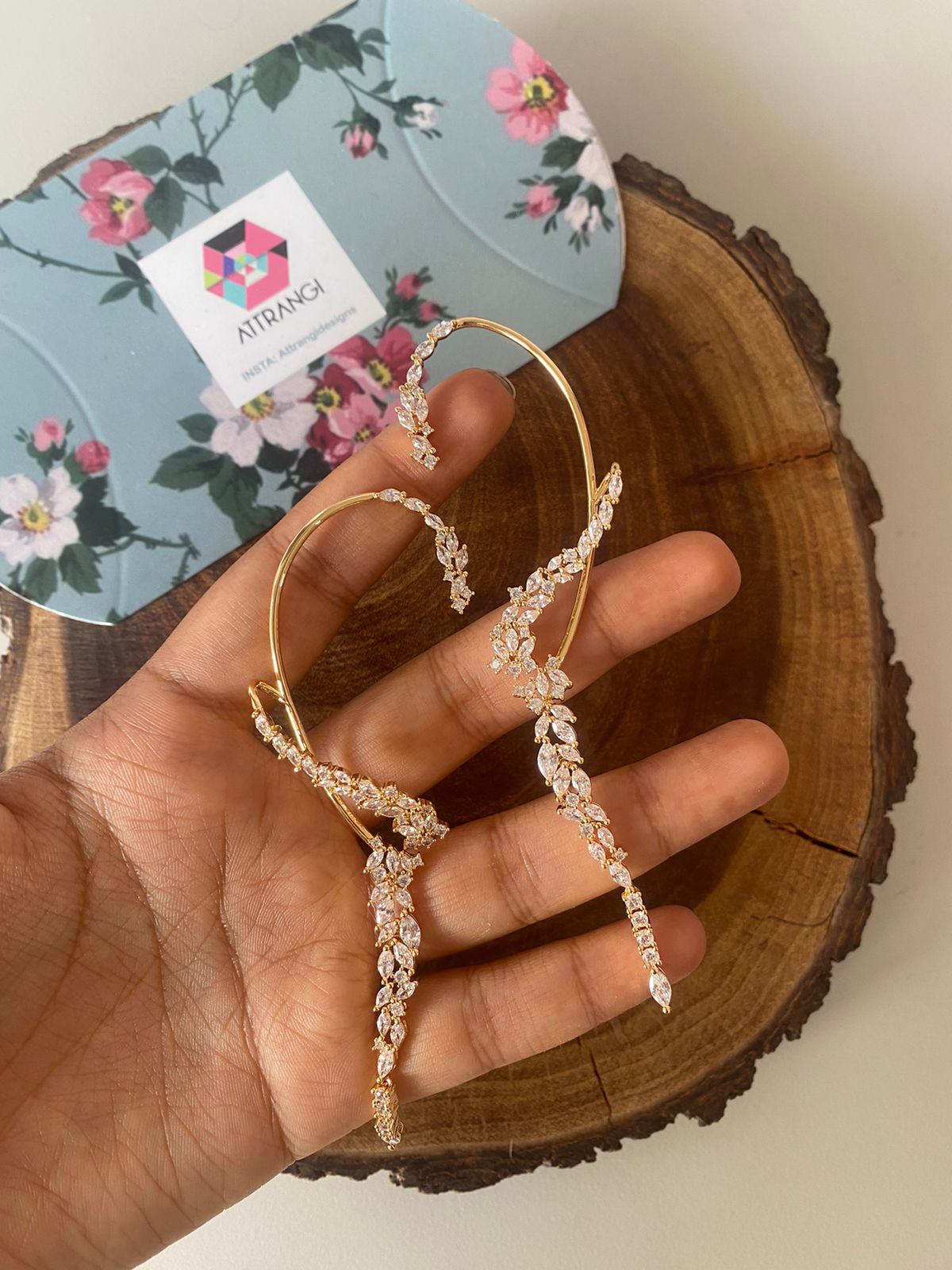 Their diamond jhumkas are such good quality. The setting is heavy and solid. The diamonds are clear and sparkly after weeks of wear. Worth every penny for statement earrings that last! Thank you Attrangi
