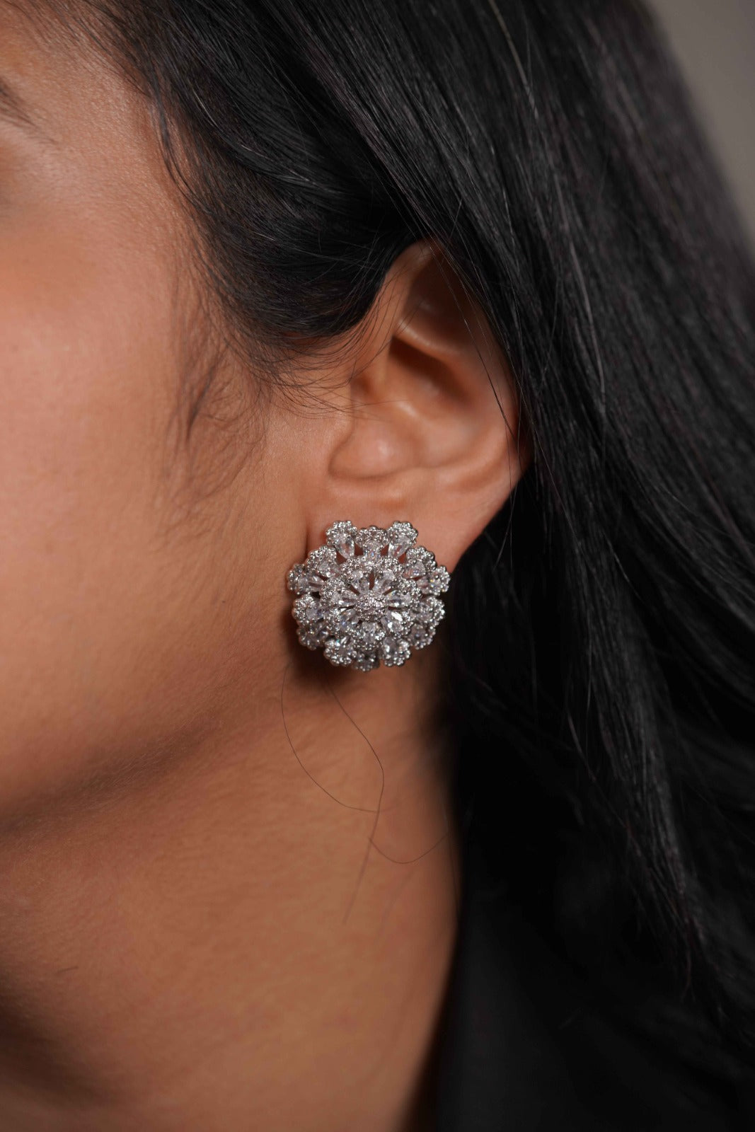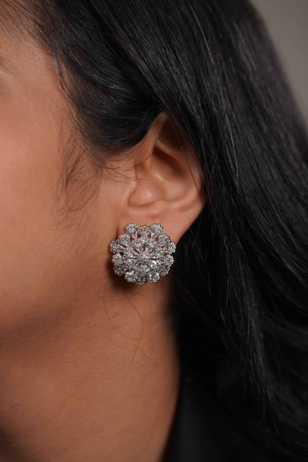 Delicate floral studs framed with a sparkling diamond halo, inspired by real flower elegance.