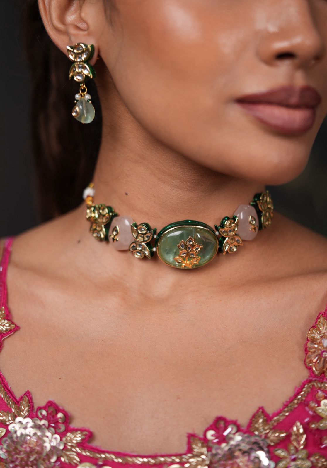 Holdali work on top. This versatile choker beautifully balances Indian elegance with a modern, Western edge. Effortless to wear and endlessly stylish, its refreshing colour palette complements every outfit — making it a timeless statement you can style again and again.