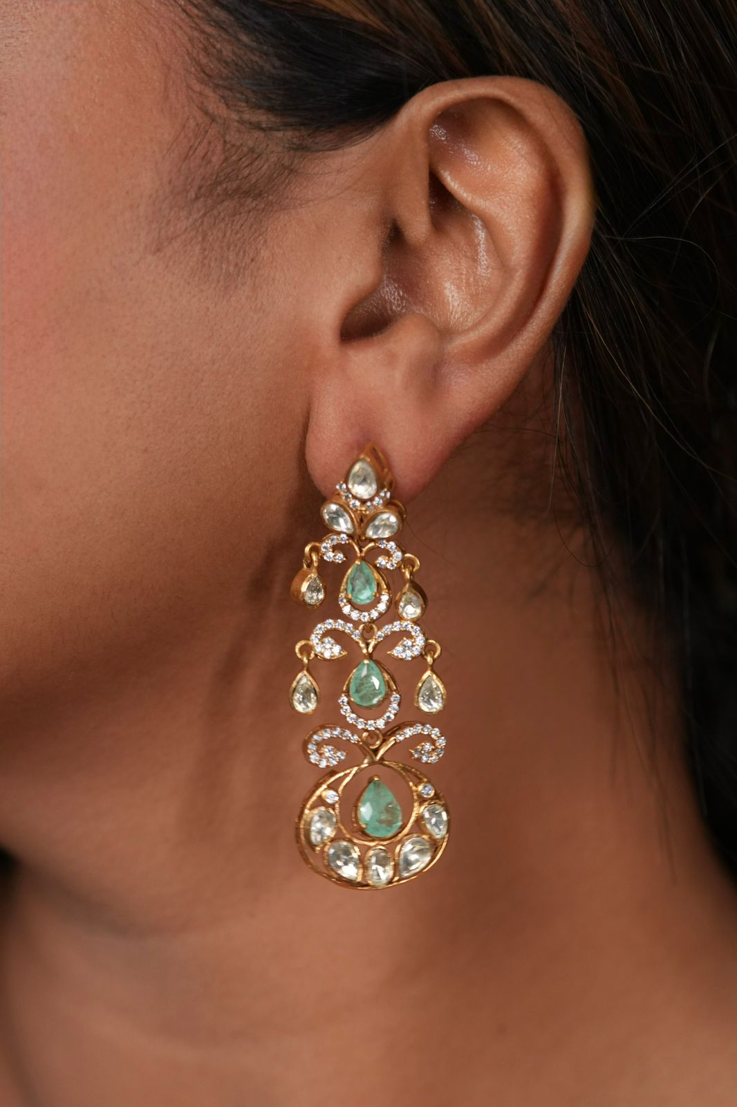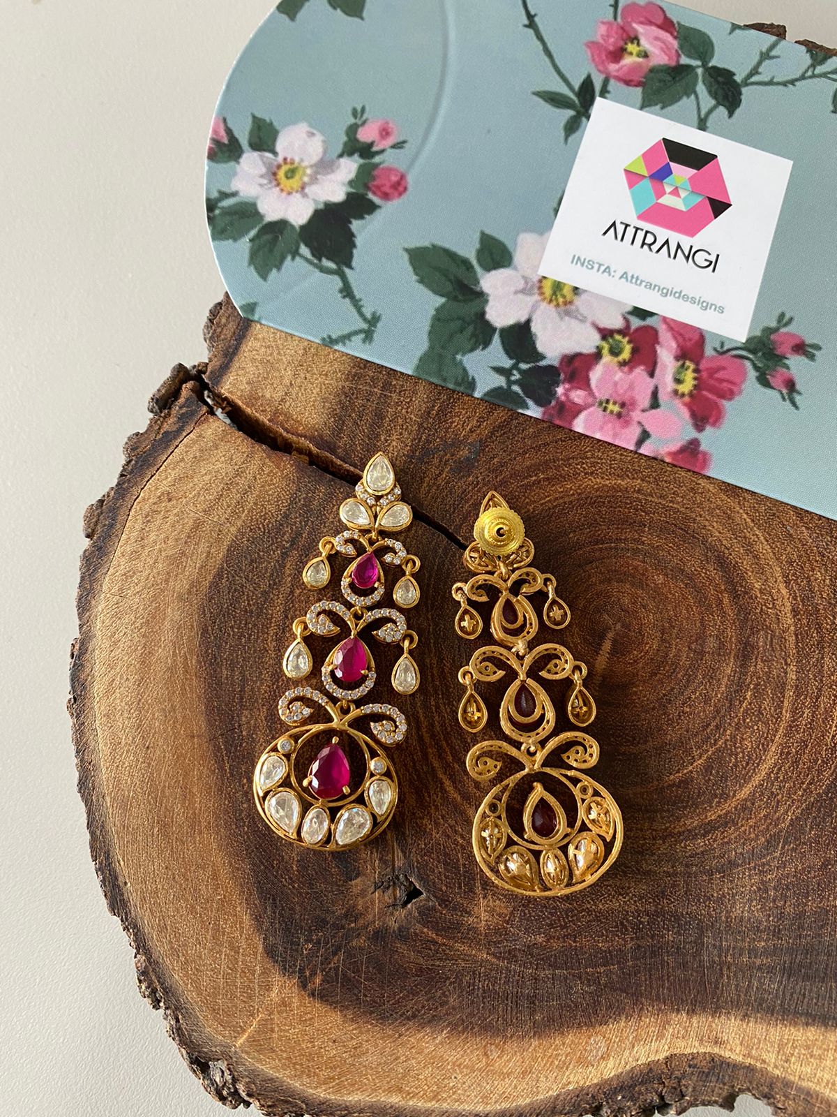 Their diamond jhumkas are such good quality. The setting is heavy and solid. The diamonds are clear and sparkly after weeks of wear. Worth every penny for statement earrings that last! Thank you Attrangi