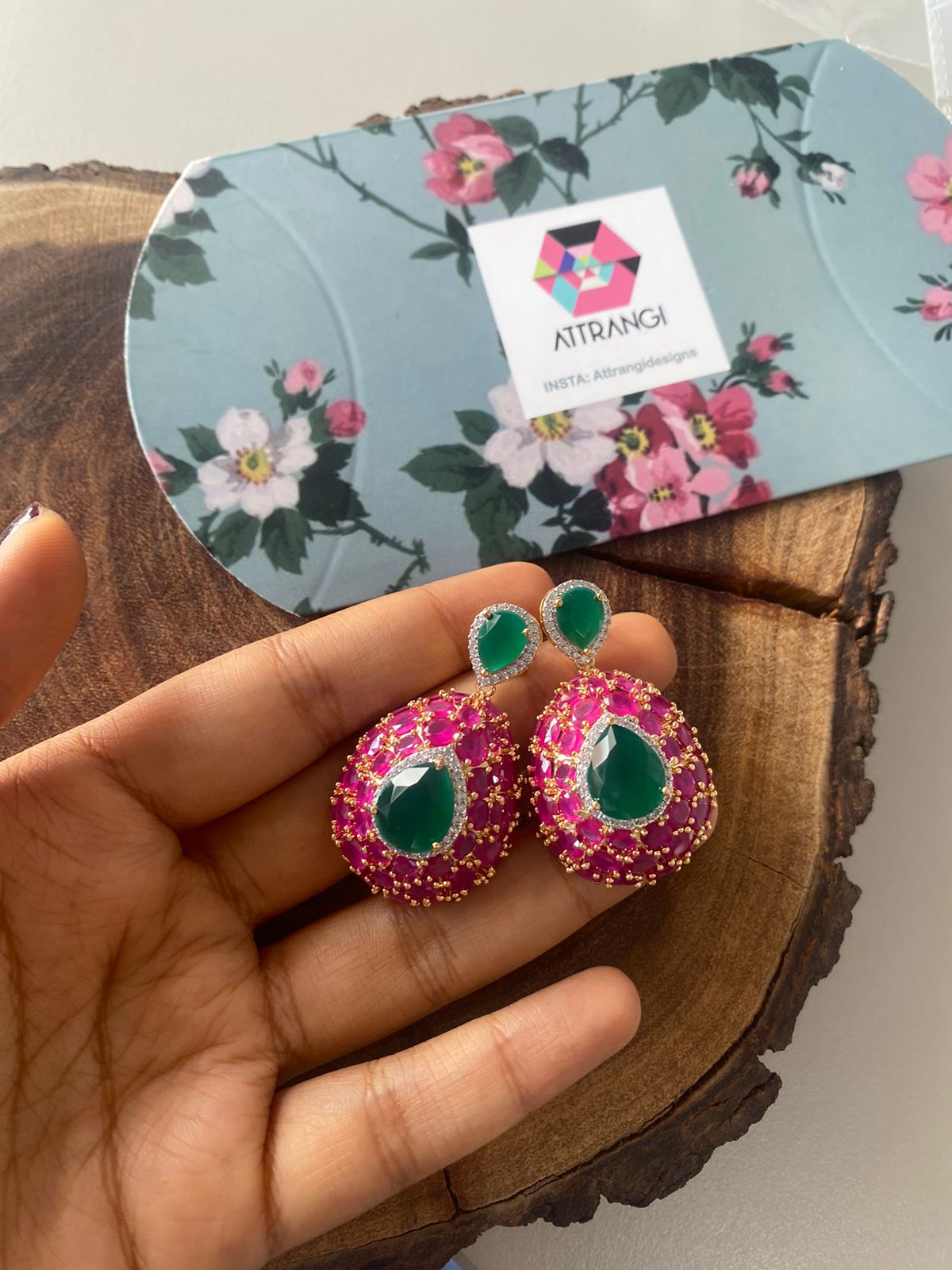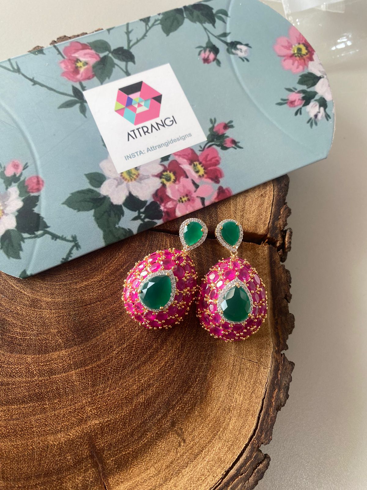 Their diamond jhumkas are such good quality. The setting is heavy and solid. The diamonds are clear and sparkly after weeks of wear. Worth every penny for statement earrings that last! Thank you Attrangi