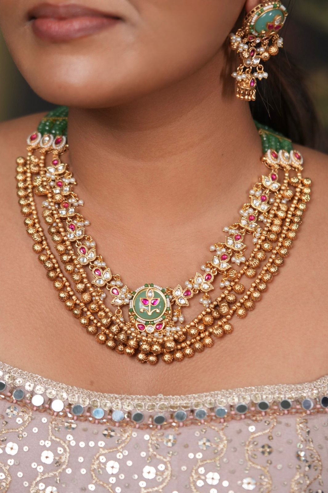 Savithri 3 Line Gold Polki Traditional Necklace Set | Sone Pe Suhaga