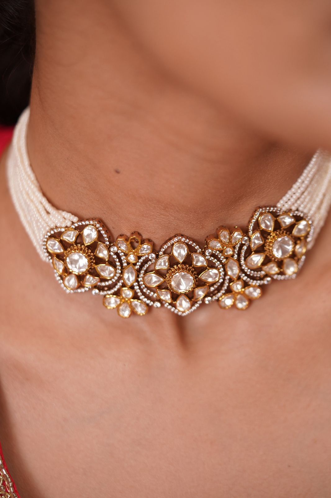 Tanya Moissanite Polki Pearl Floral Choker Set