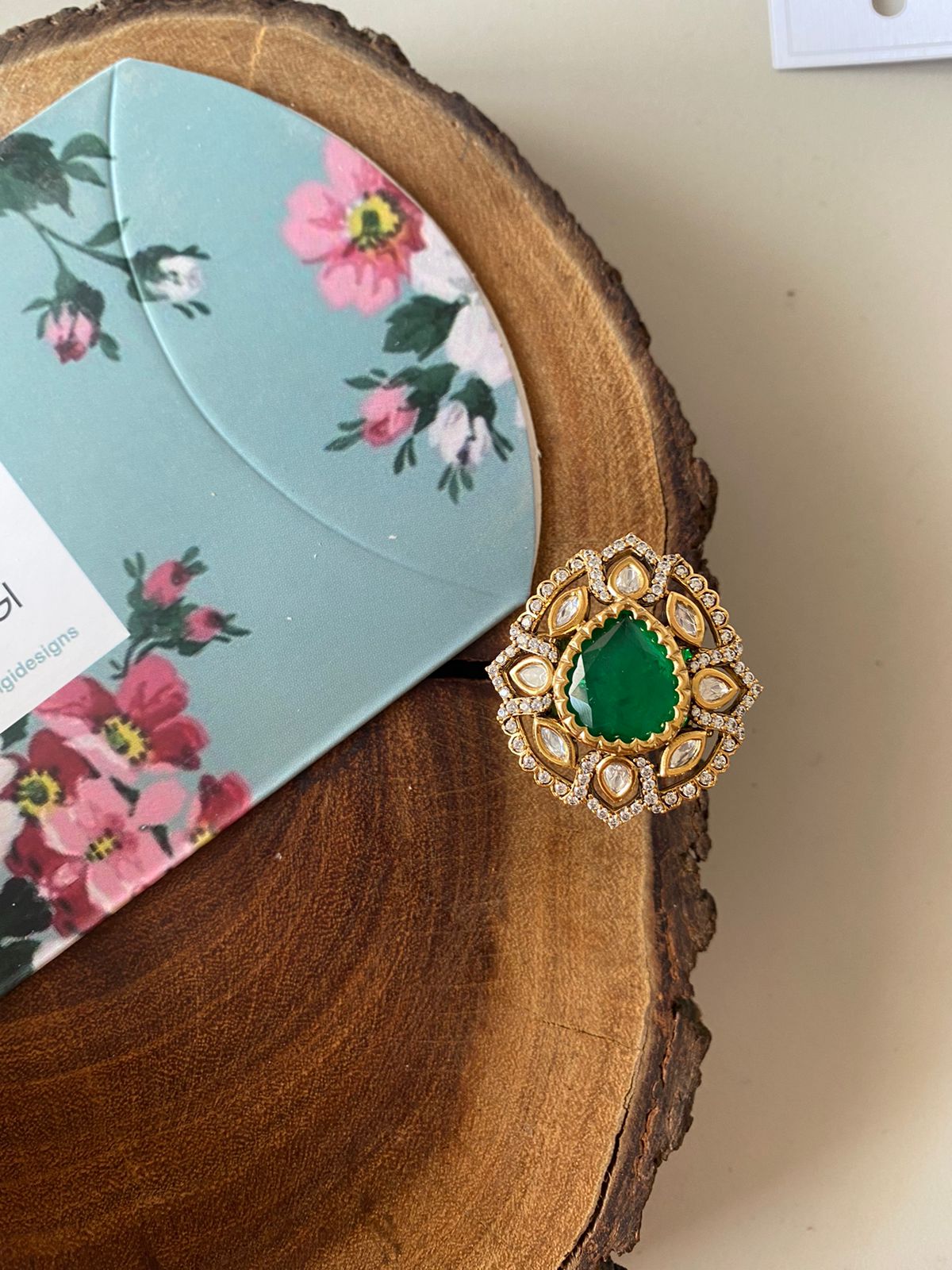 Savita Polki Moissanite Uncut Diamond Indian Ring | Adjustable
