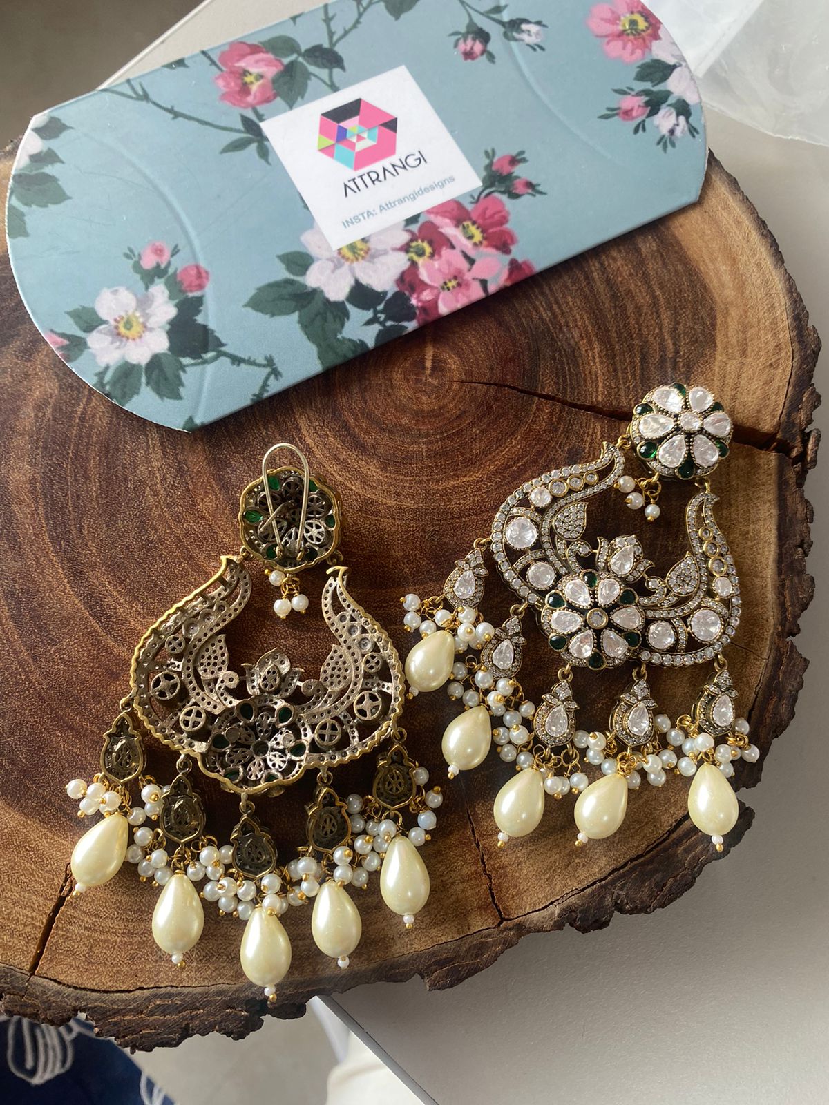 Their diamond jhumkas are such good quality. The setting is heavy and solid. The diamonds are clear and sparkly after weeks of wear. Worth every penny for statement earrings that last! Thank you Attrangi