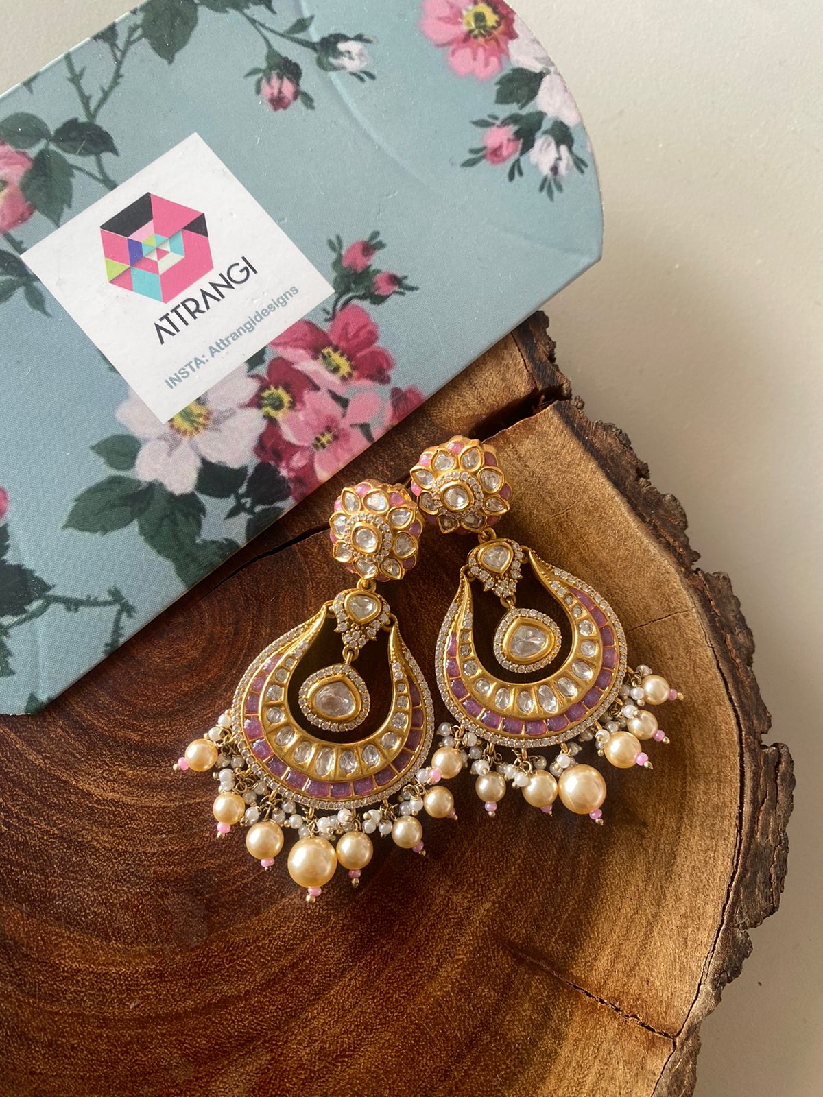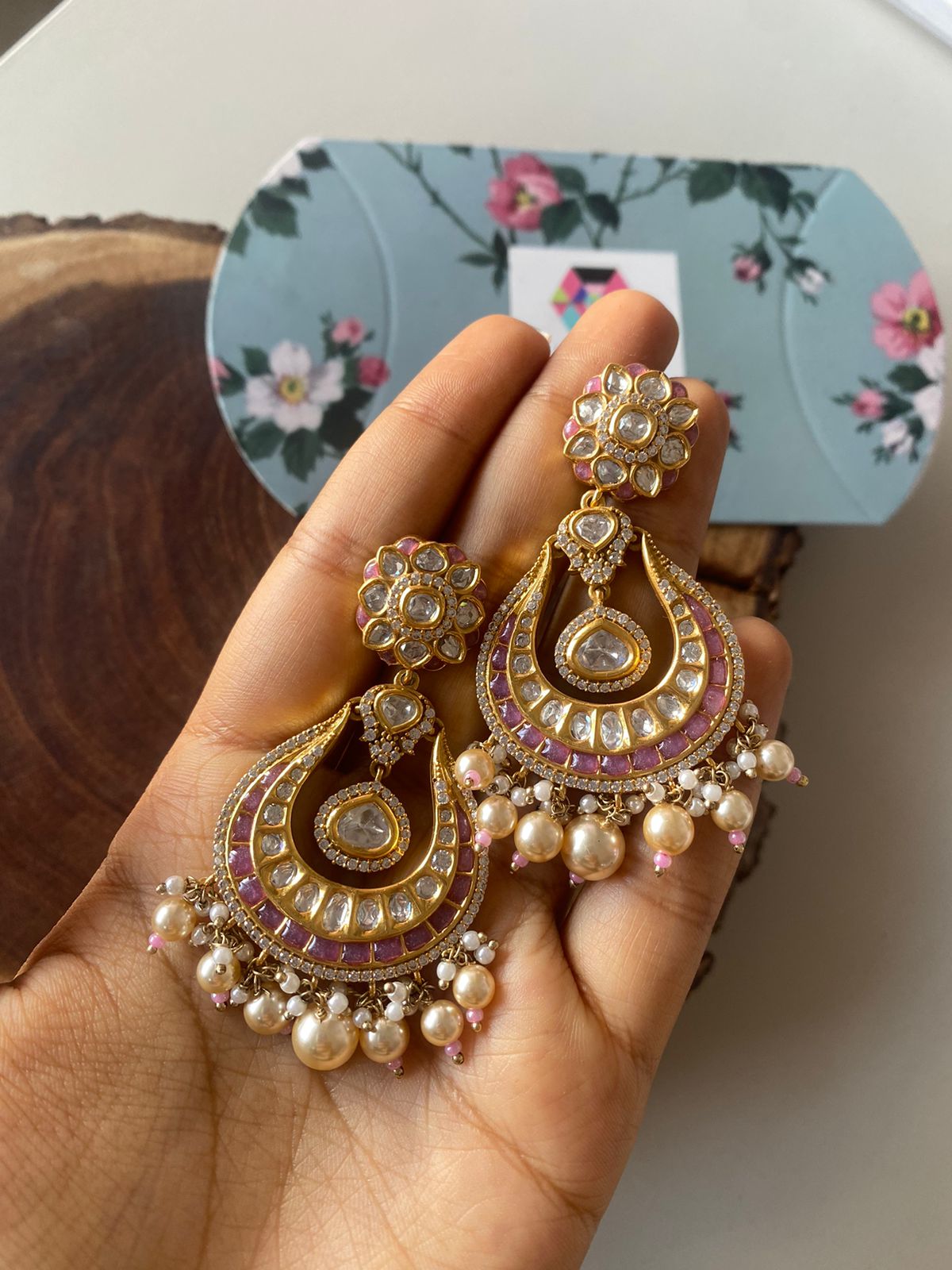 Indian earrings, chandbalis that have a hint of colour, are light in weight and are made with the best moissanites? You have it. Meet Mitali, this light weight Indian earring will be your best friend for the upcoming wedding season.