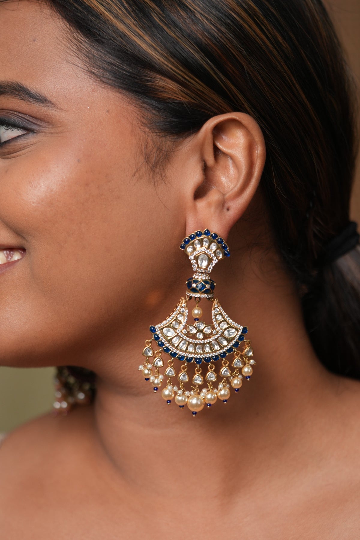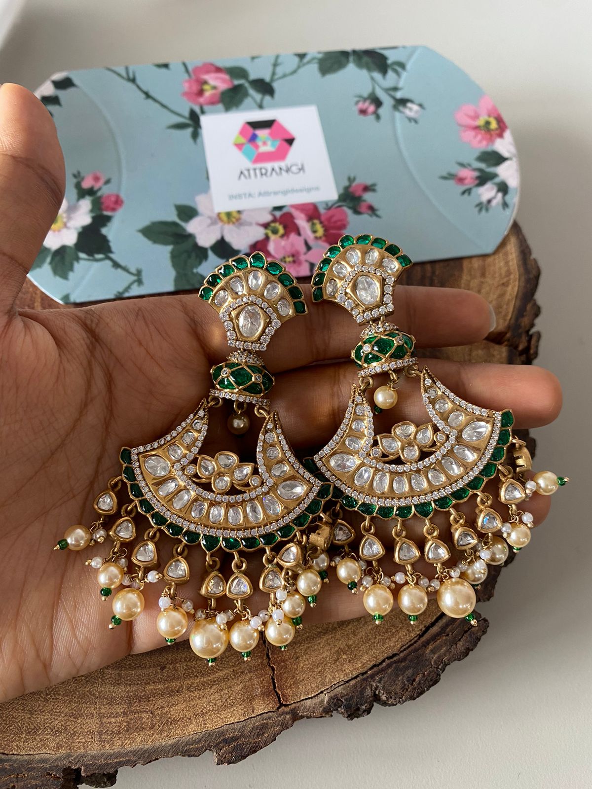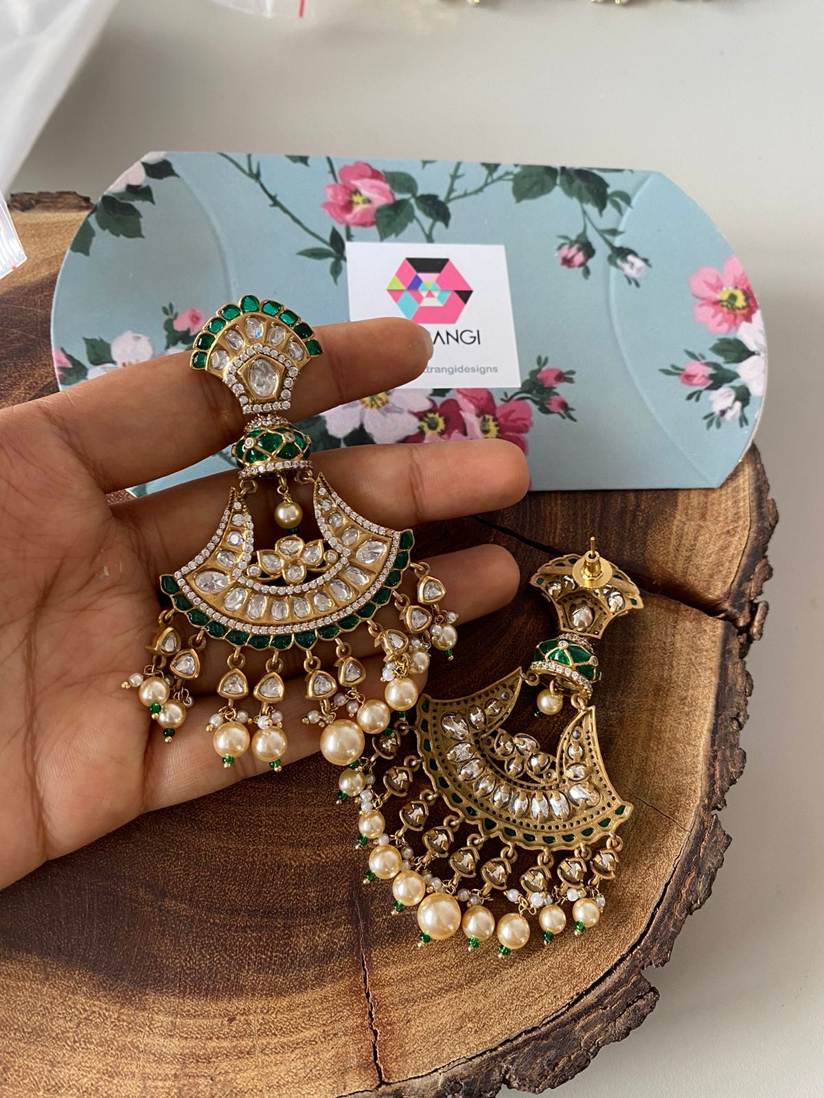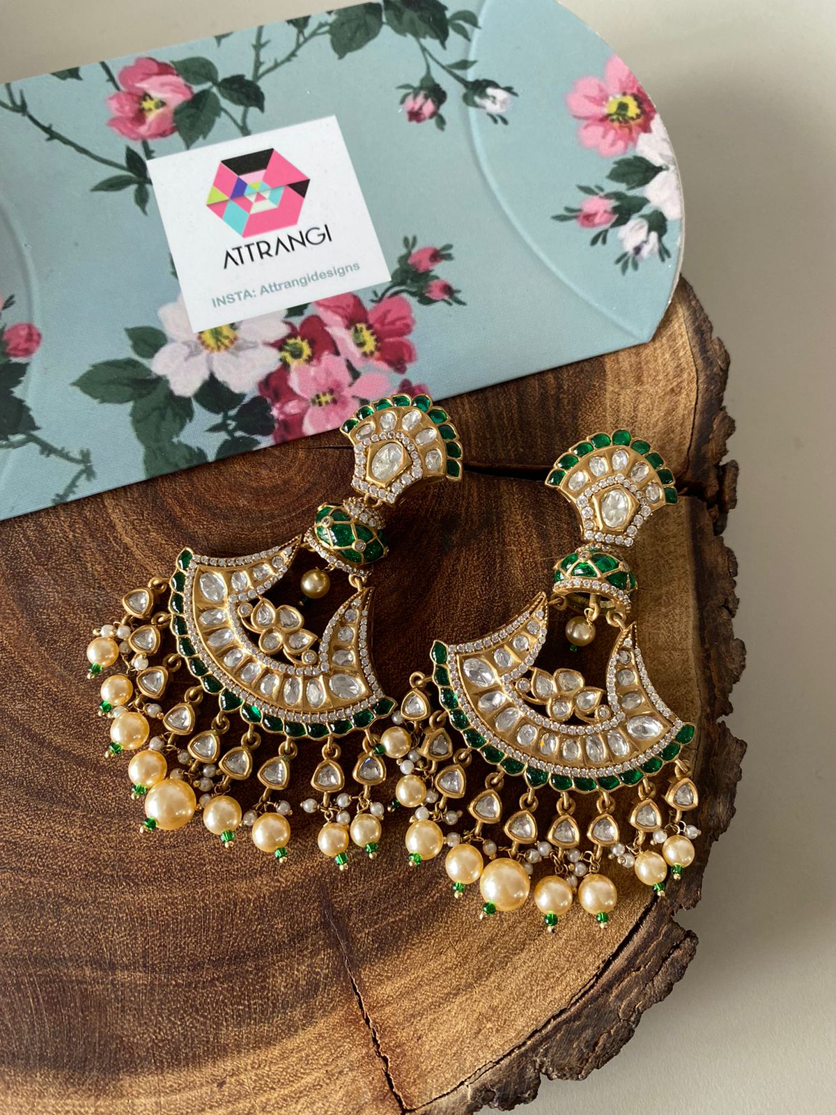 Basanti Moissanite Polki Epoxy Meenakari Chandbali Indian Earring
