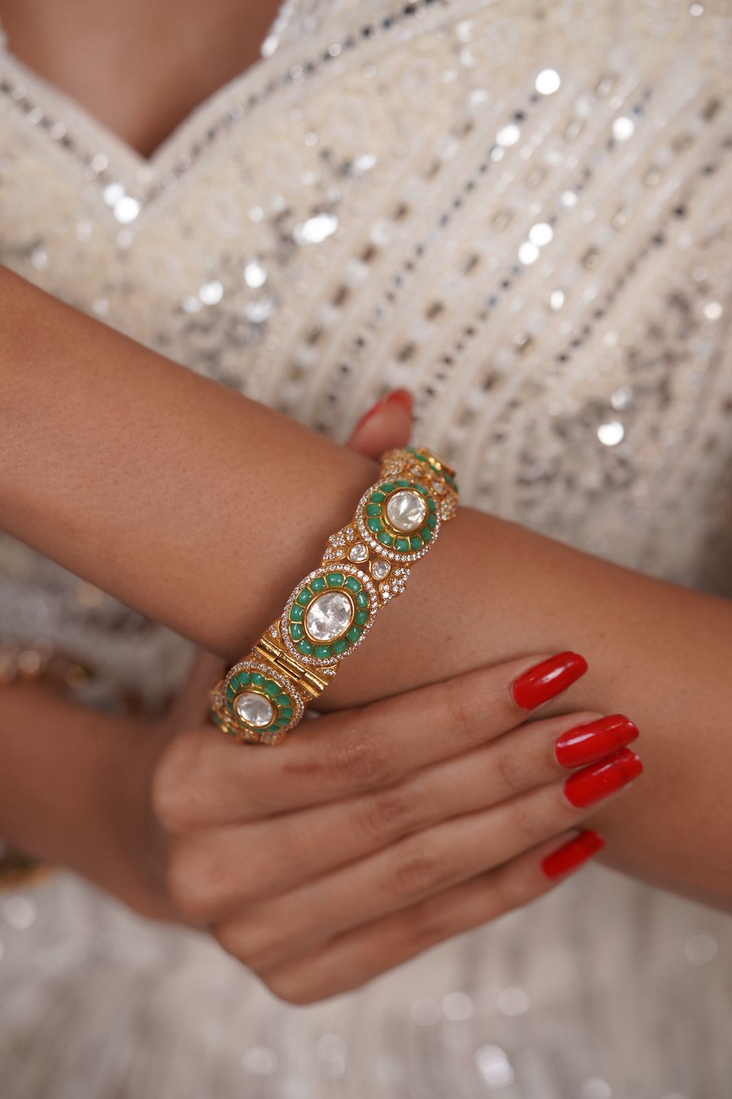 Draupadi Moissanite Polki Rich Mid-Thick Kada | Next To Real