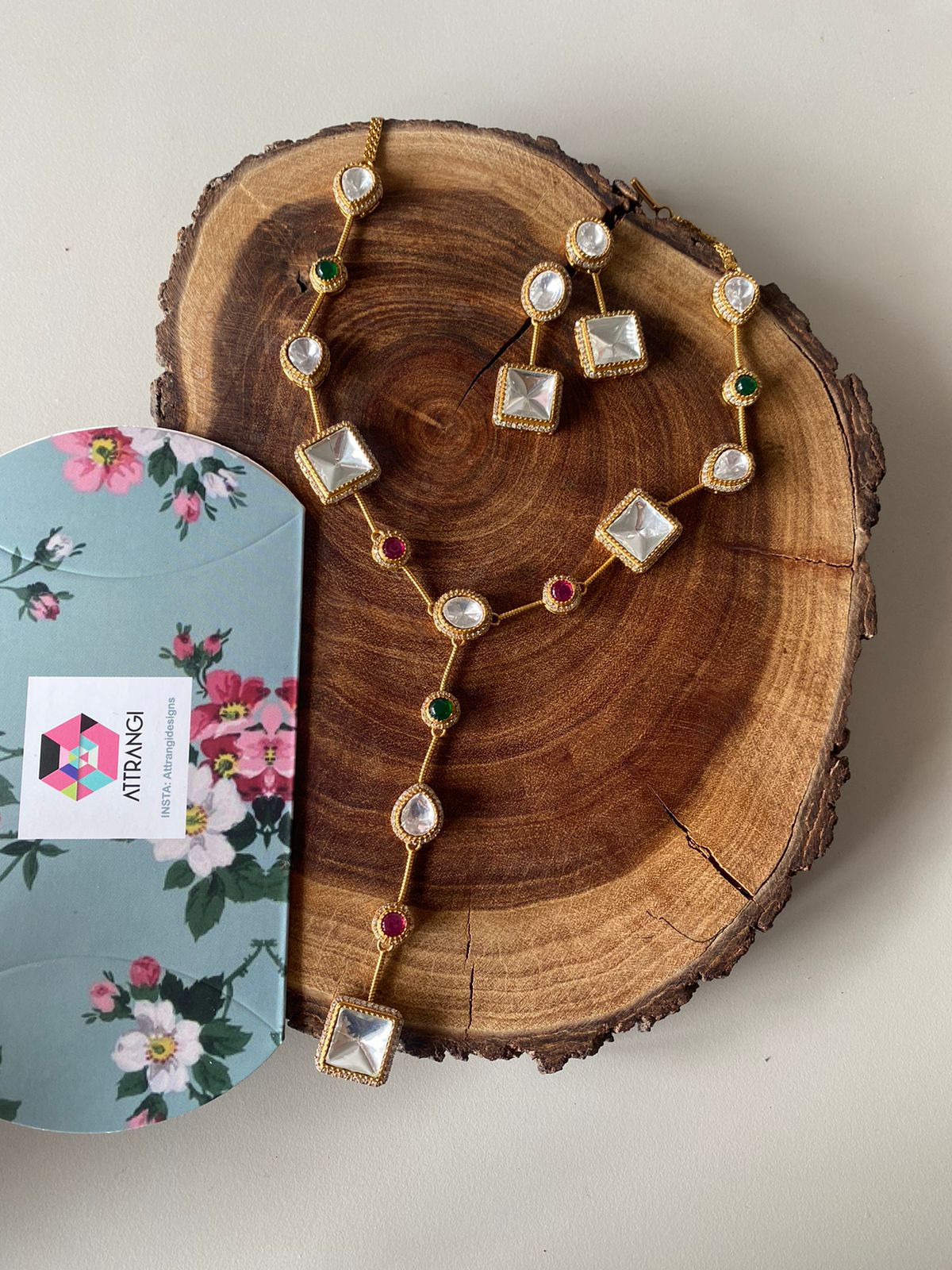 Nisha Long Statement Polki Drop Necklace with Earrings