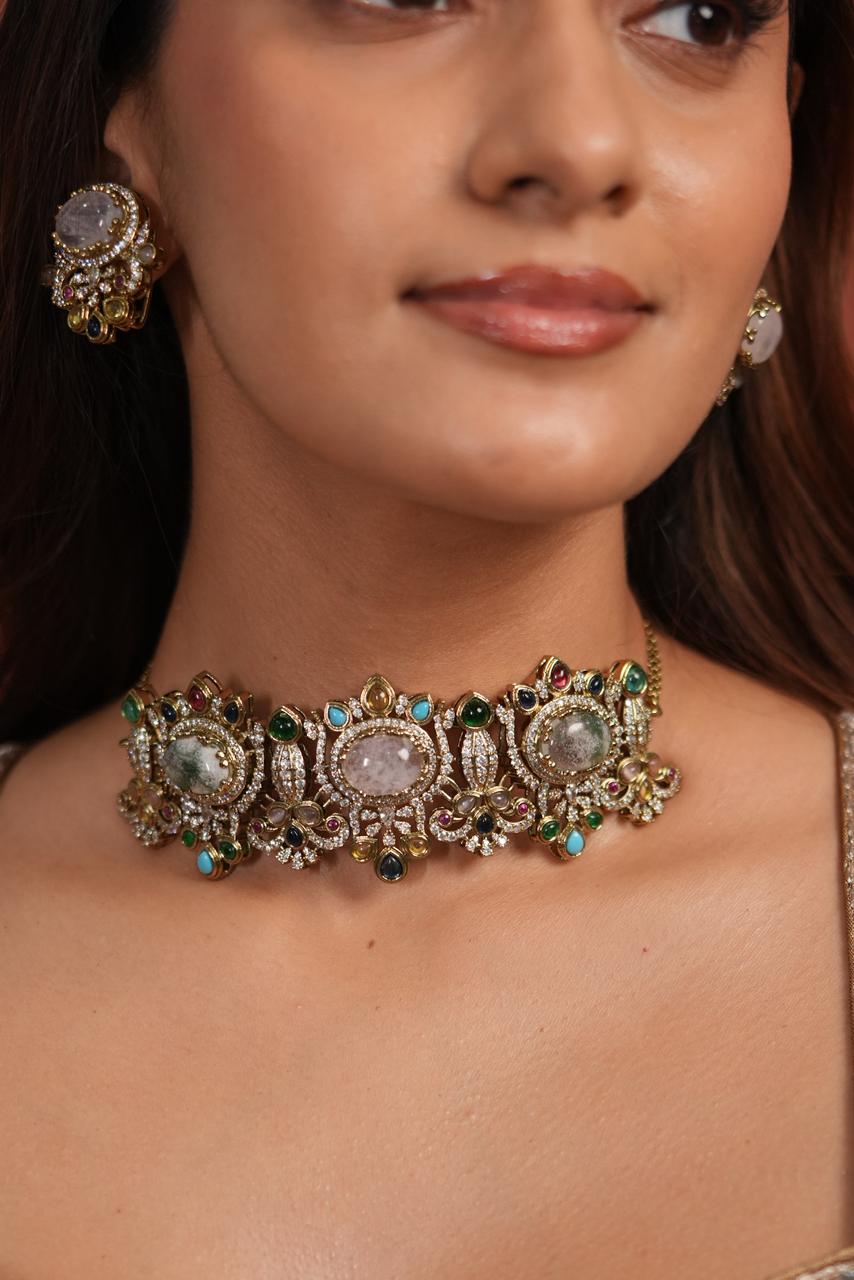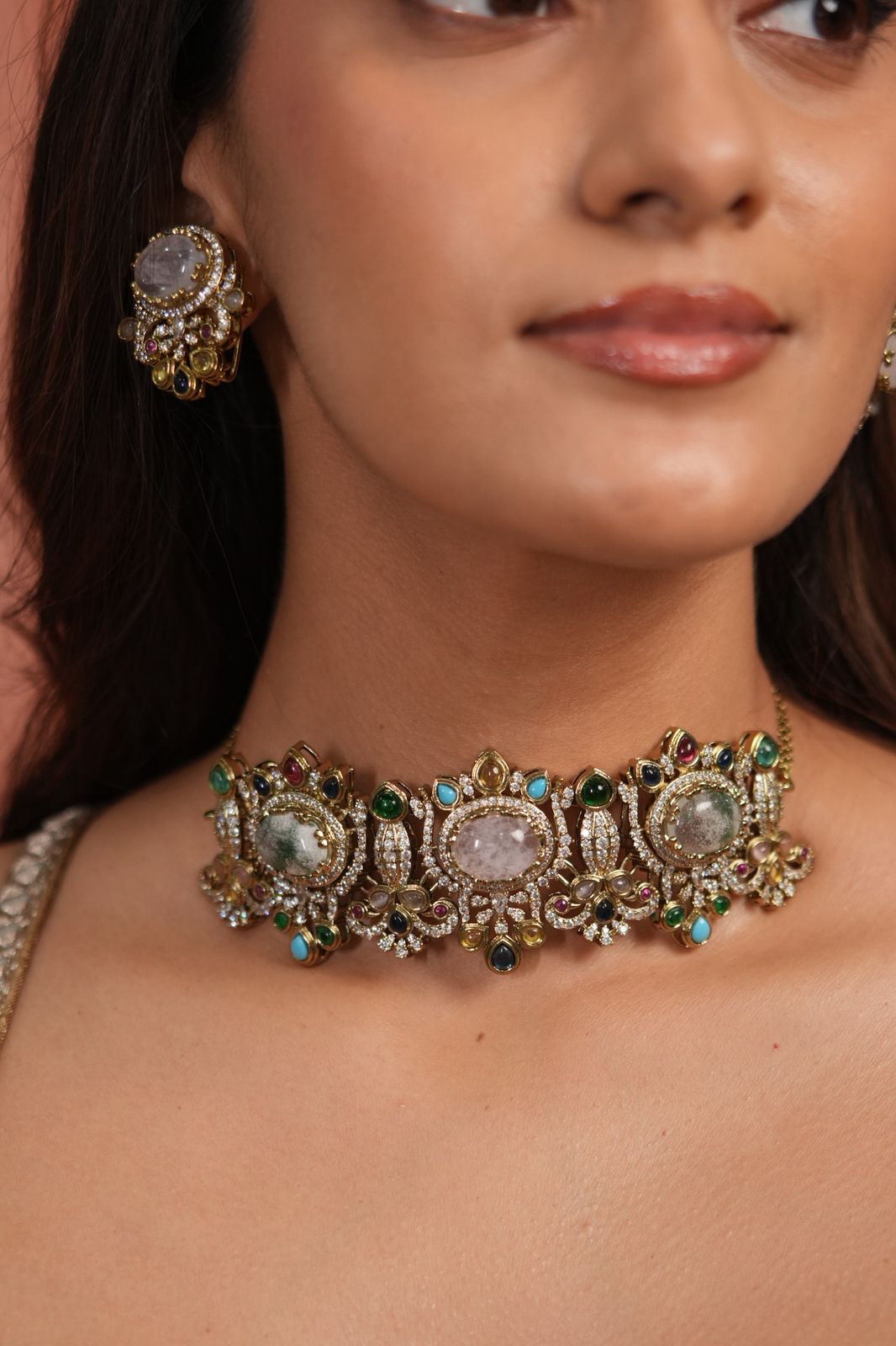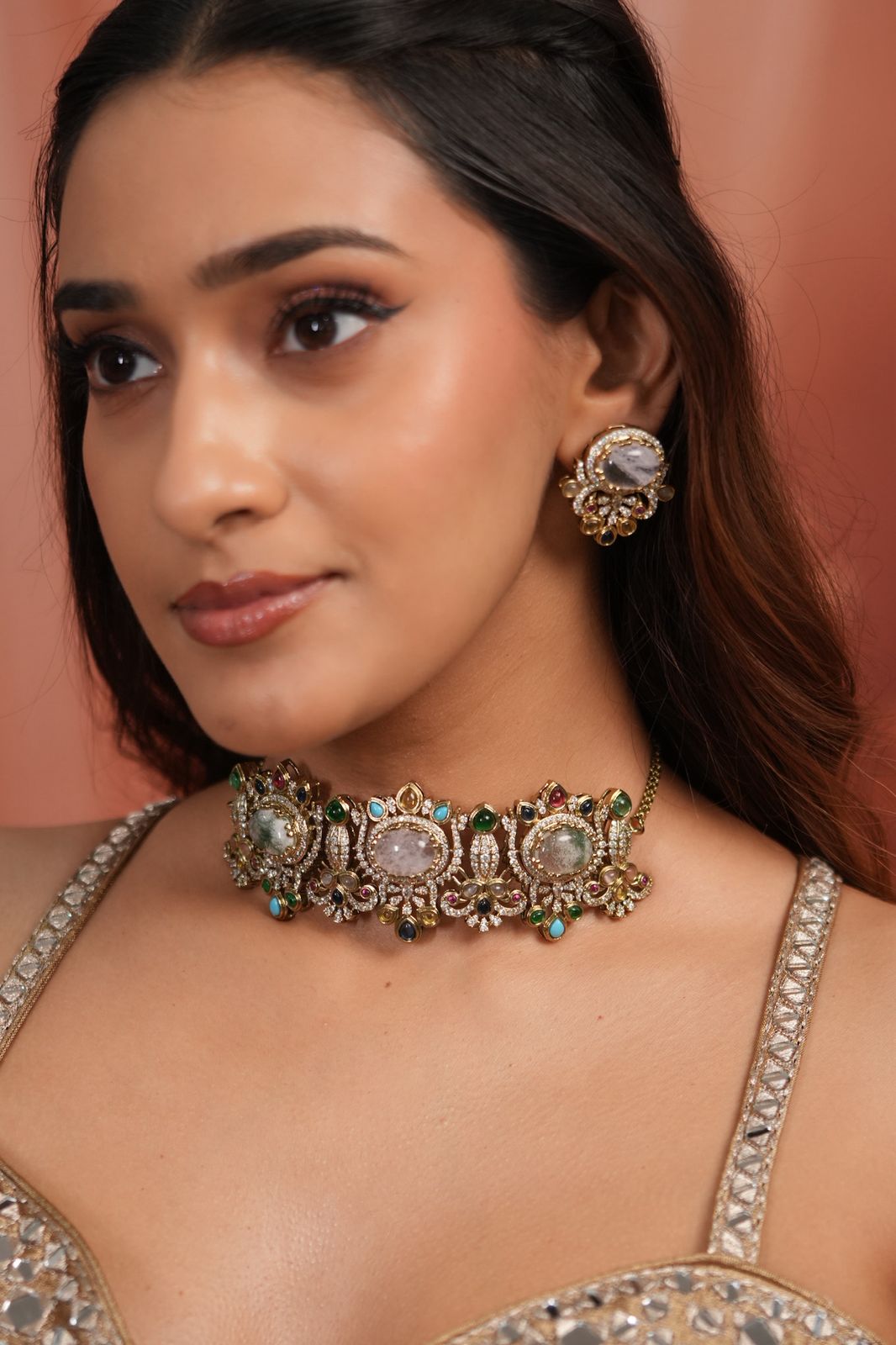 Abraar Sabhya Moissanite Multicolour Choker Set | GemZ