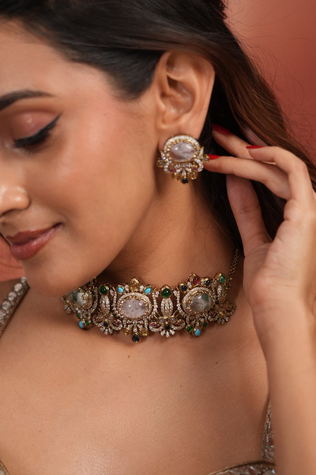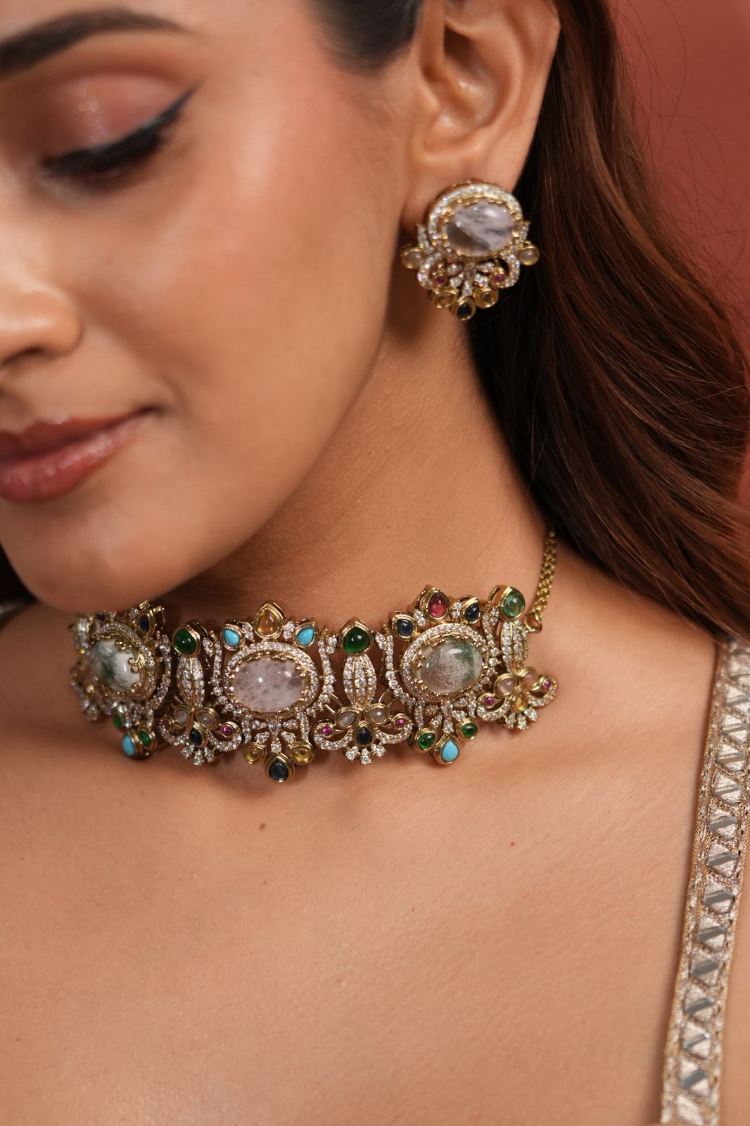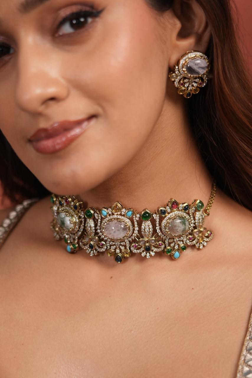 Abraar Sabhya Moissanite Multicolour Choker Set | GemZ