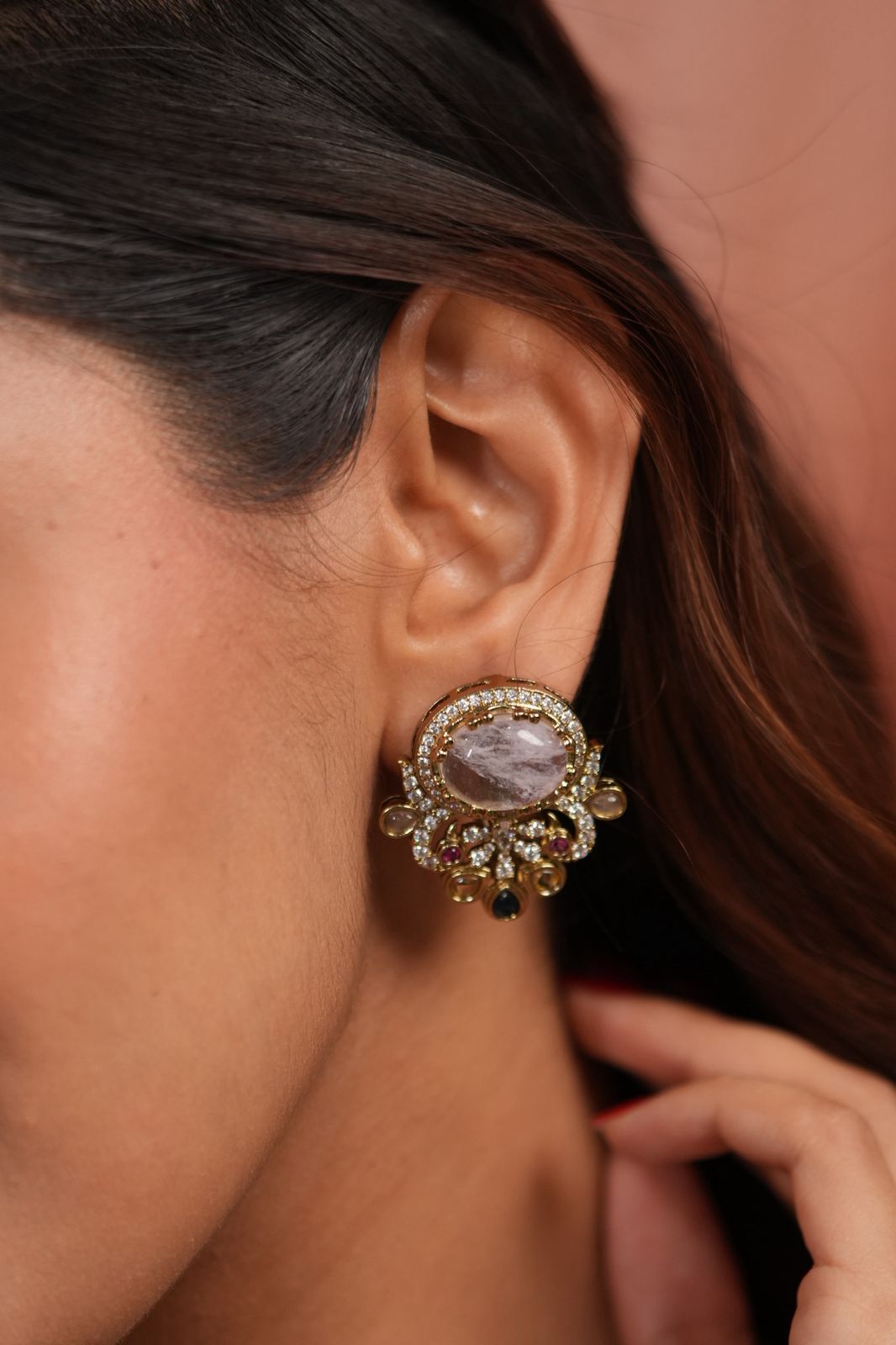 A mid sized choker set with multi coloured neutral gemstones that comes with studs. Wearable and versatile this set will never let you down.