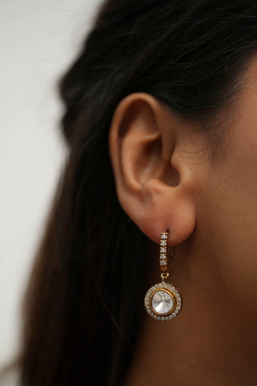 Antique gold Balis with Polki drop in dull gold polish to give you the most wearable indo western earring. Wear this with Indian too for an effortless dainty look.