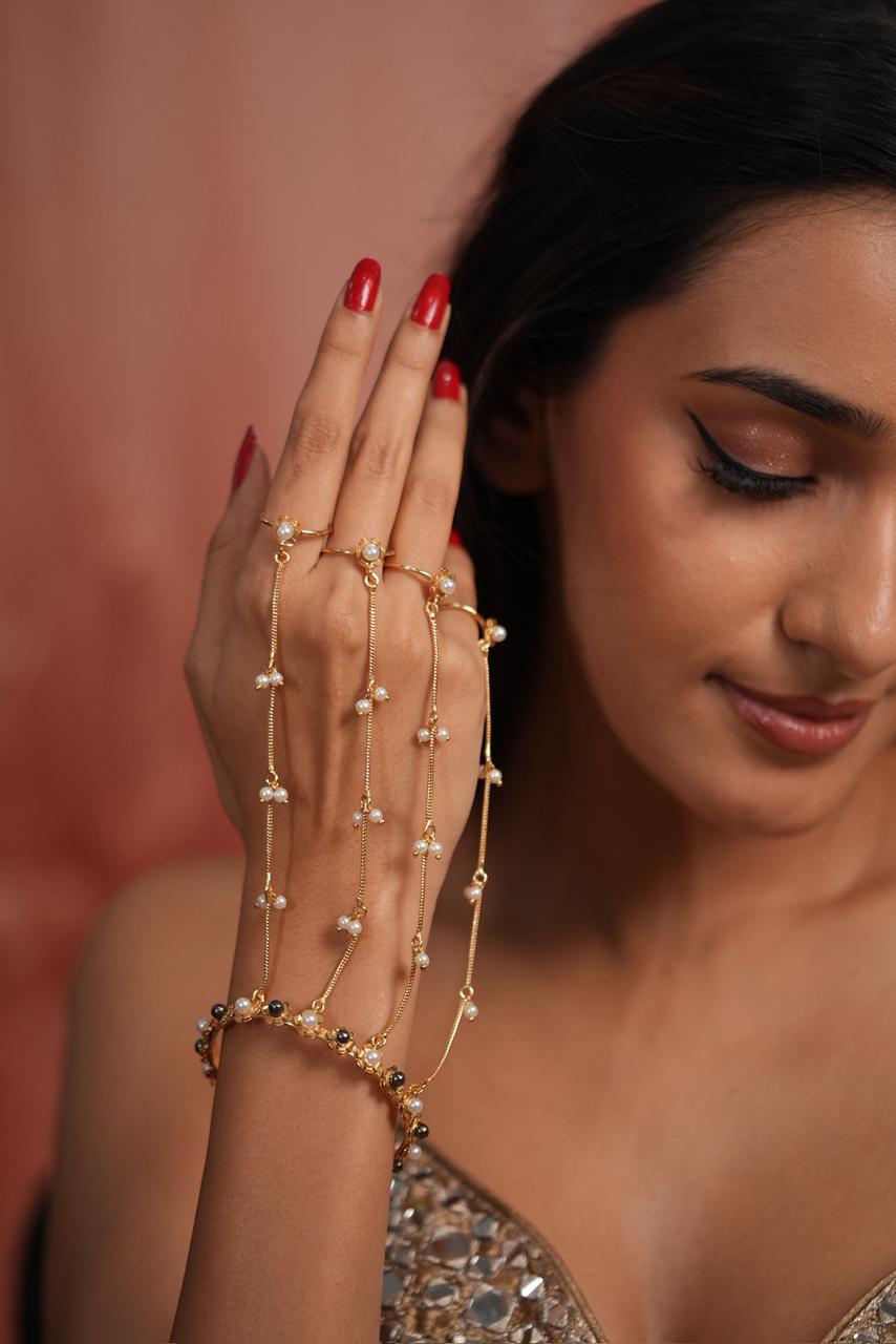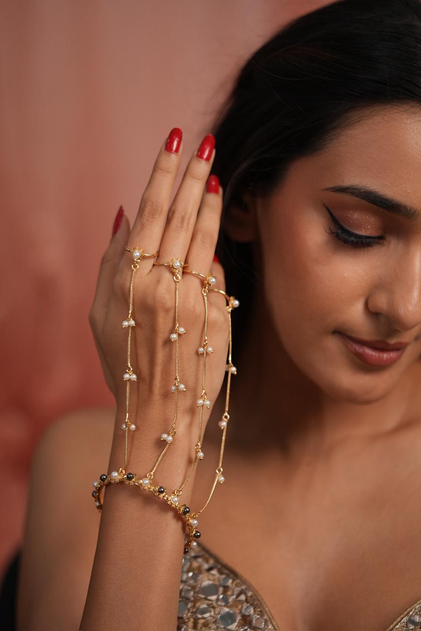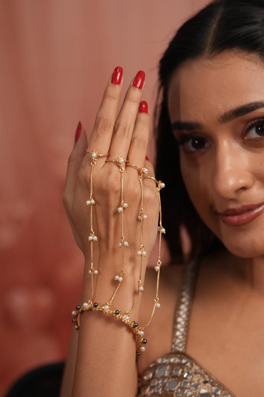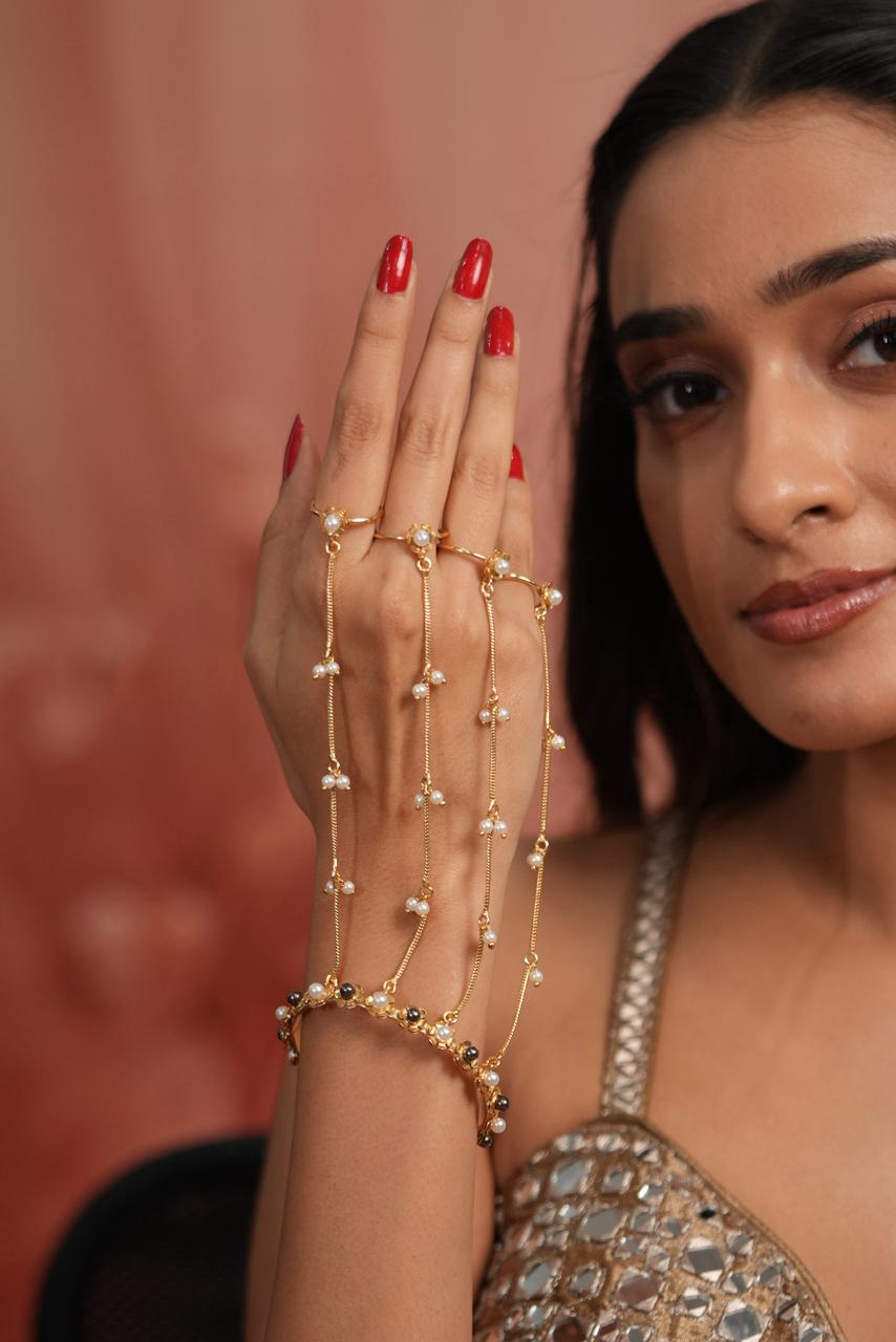 Chaar Taar Pearl Gold Hathpan | Hand Harness