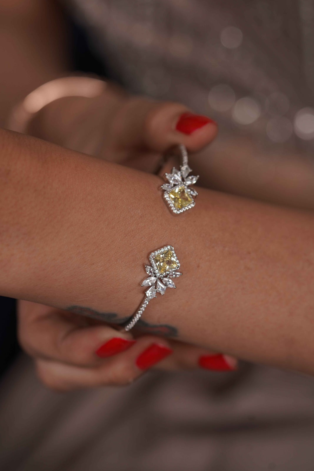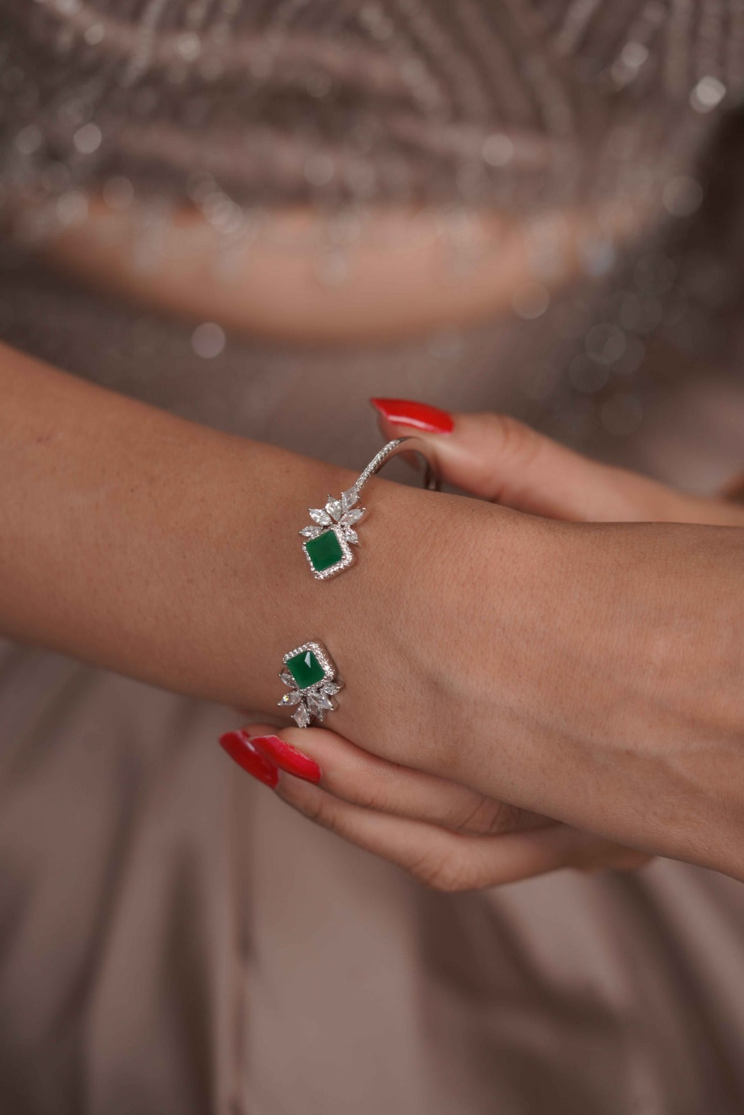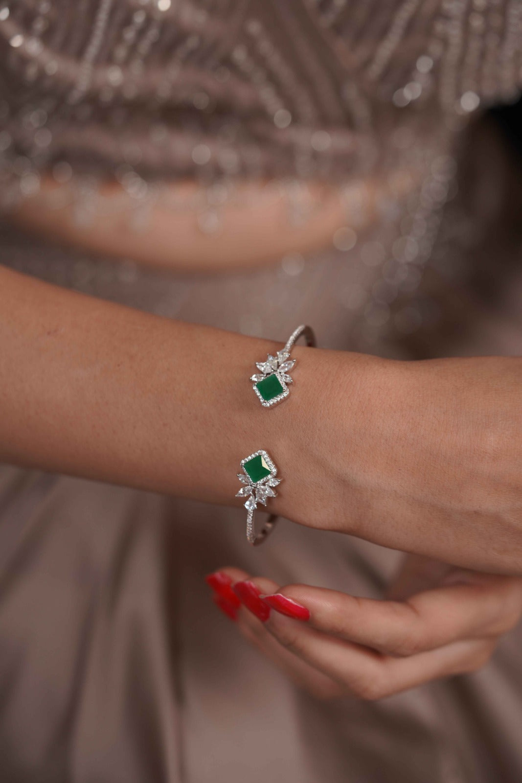 A slim diamond bracelet with coloured stones on both sides that looks effortless for an elevated daily wear look.