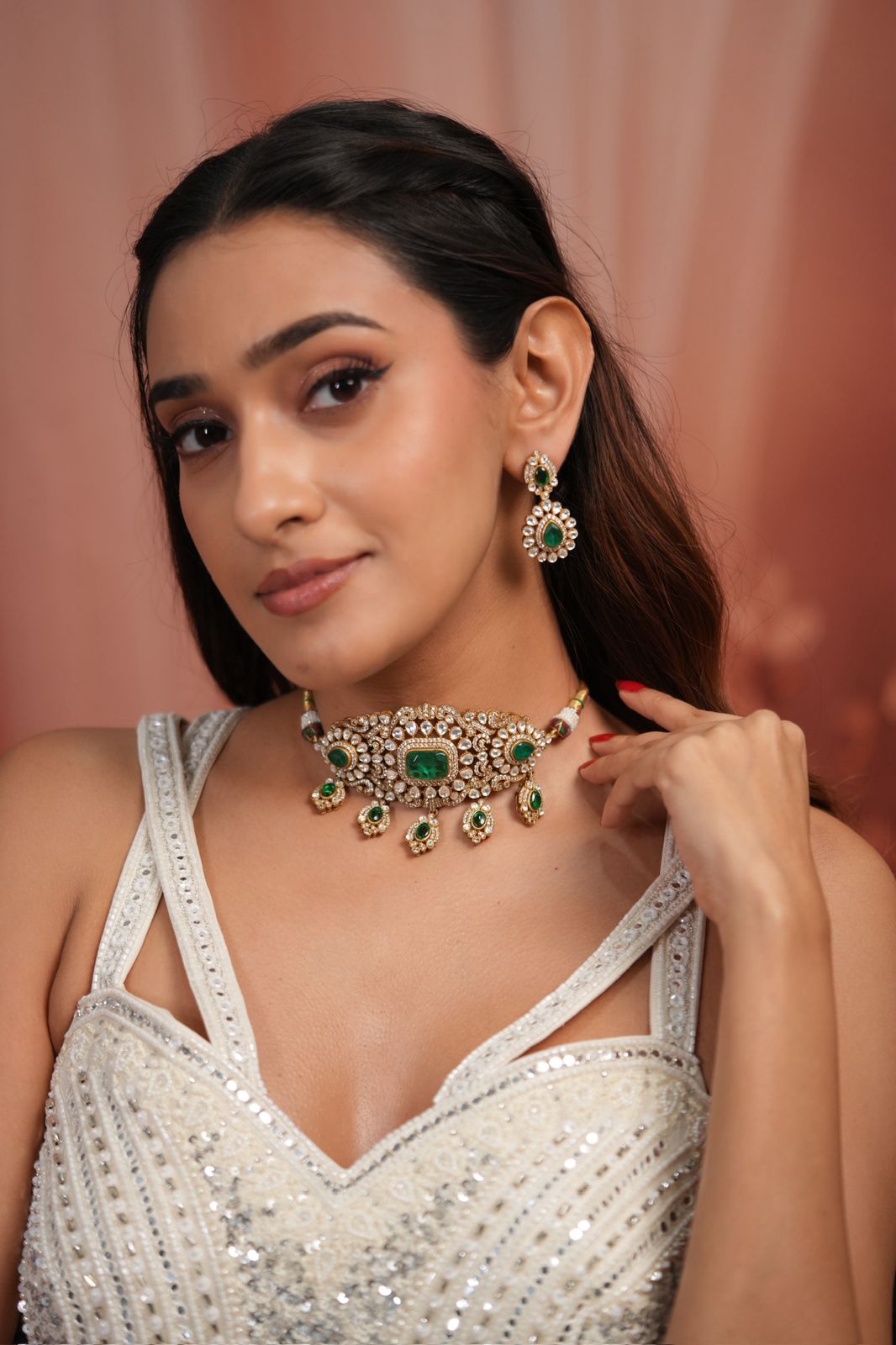 Don’t want a choker set with pearls on the side, want something classic with pure polkis and the most pretty mid sized earrings? Devi is your best bet!