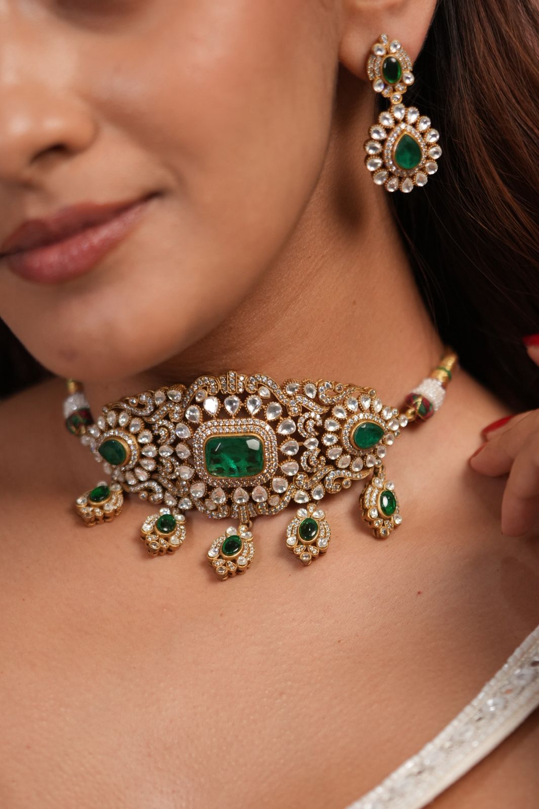 Devi Polki Emerald Classic Choker Set