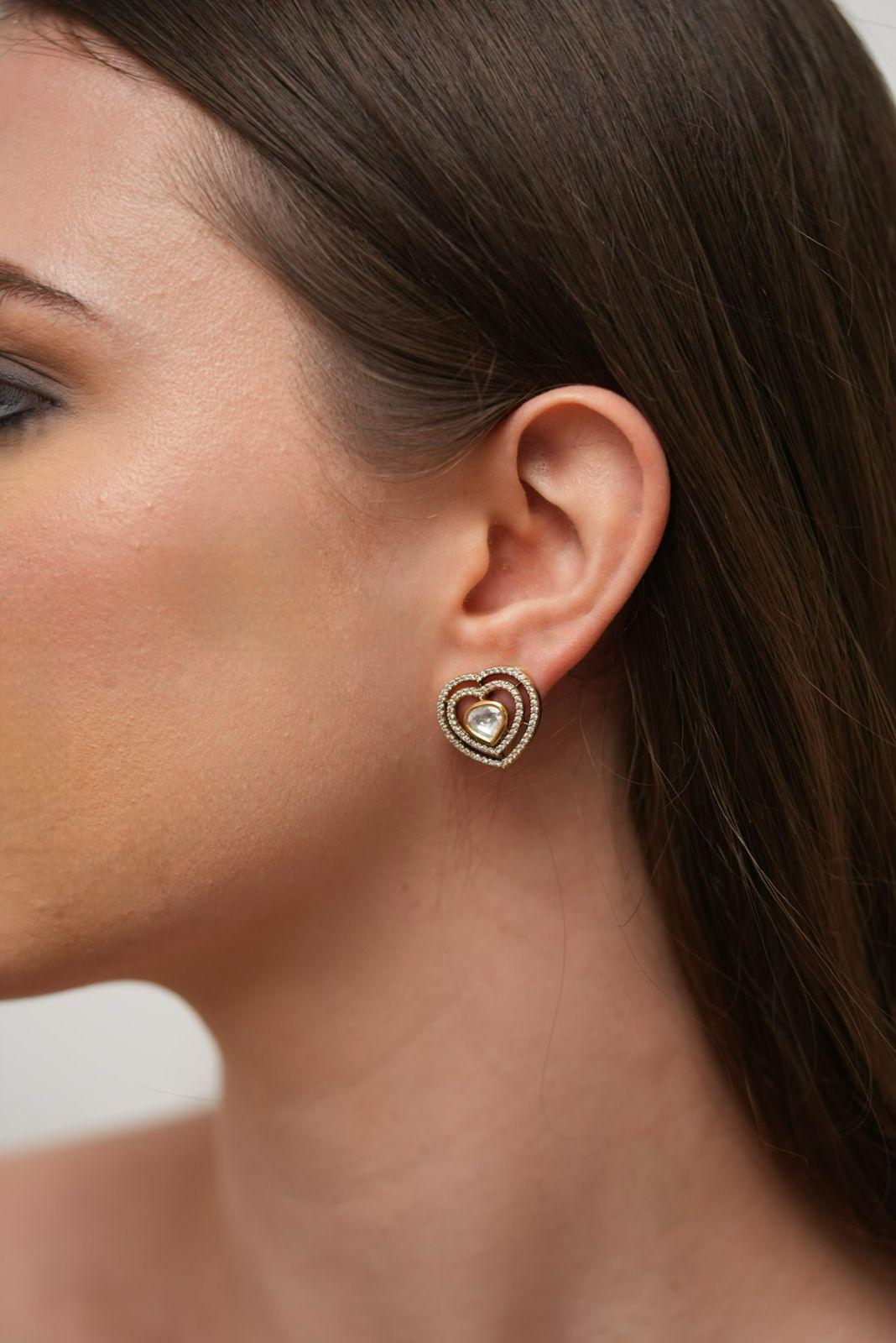 Dil Ki Dhadkan Polki Moissanite Heart Studs
