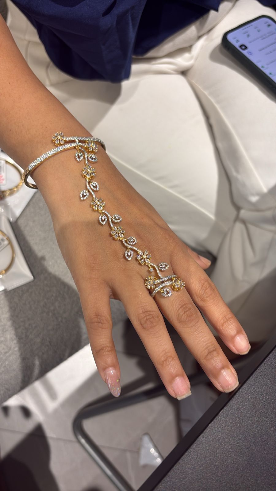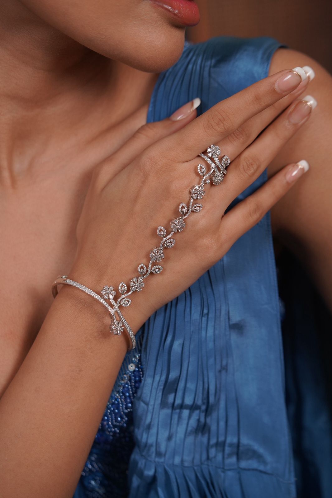 Floral Poetry Diamond Hathpan Bracelet | Hand harness